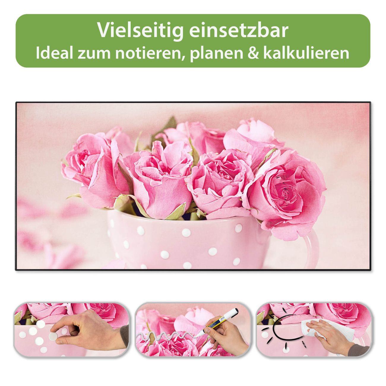 Metall Magnettafel beschreibbar 78x37cm Motiv Tasse Voll Rosen