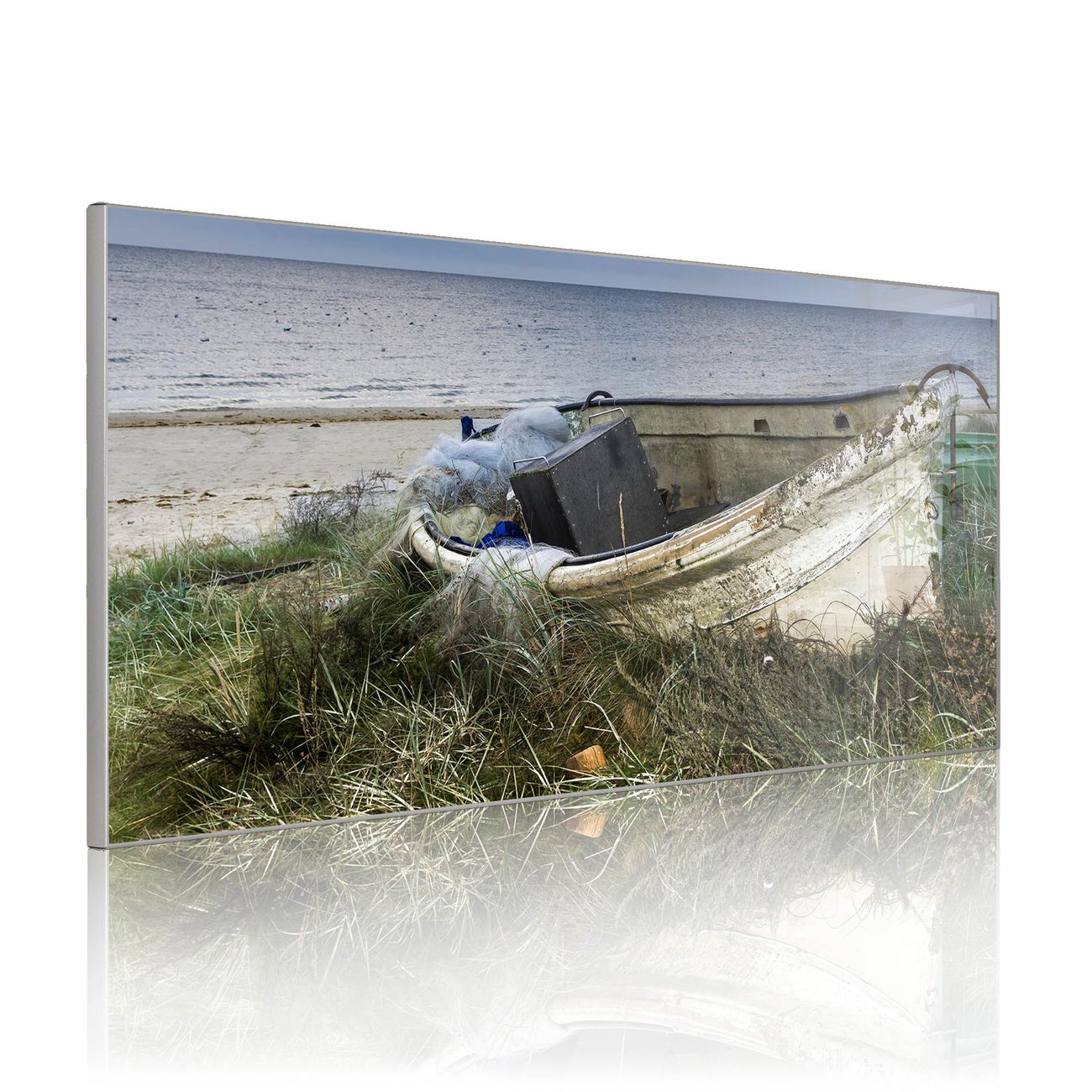 Metall Magnettafel beschreibbar 78x37cm Motiv Vergessenes Fischerboot