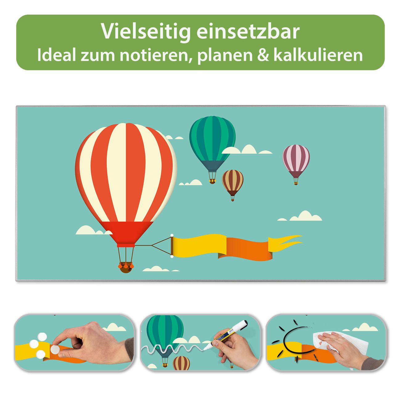 Metall Magnettafel beschreibbar 78x37cm Motiv Vier Ballons
