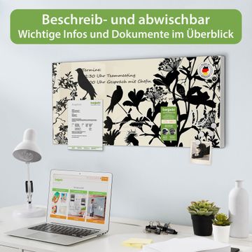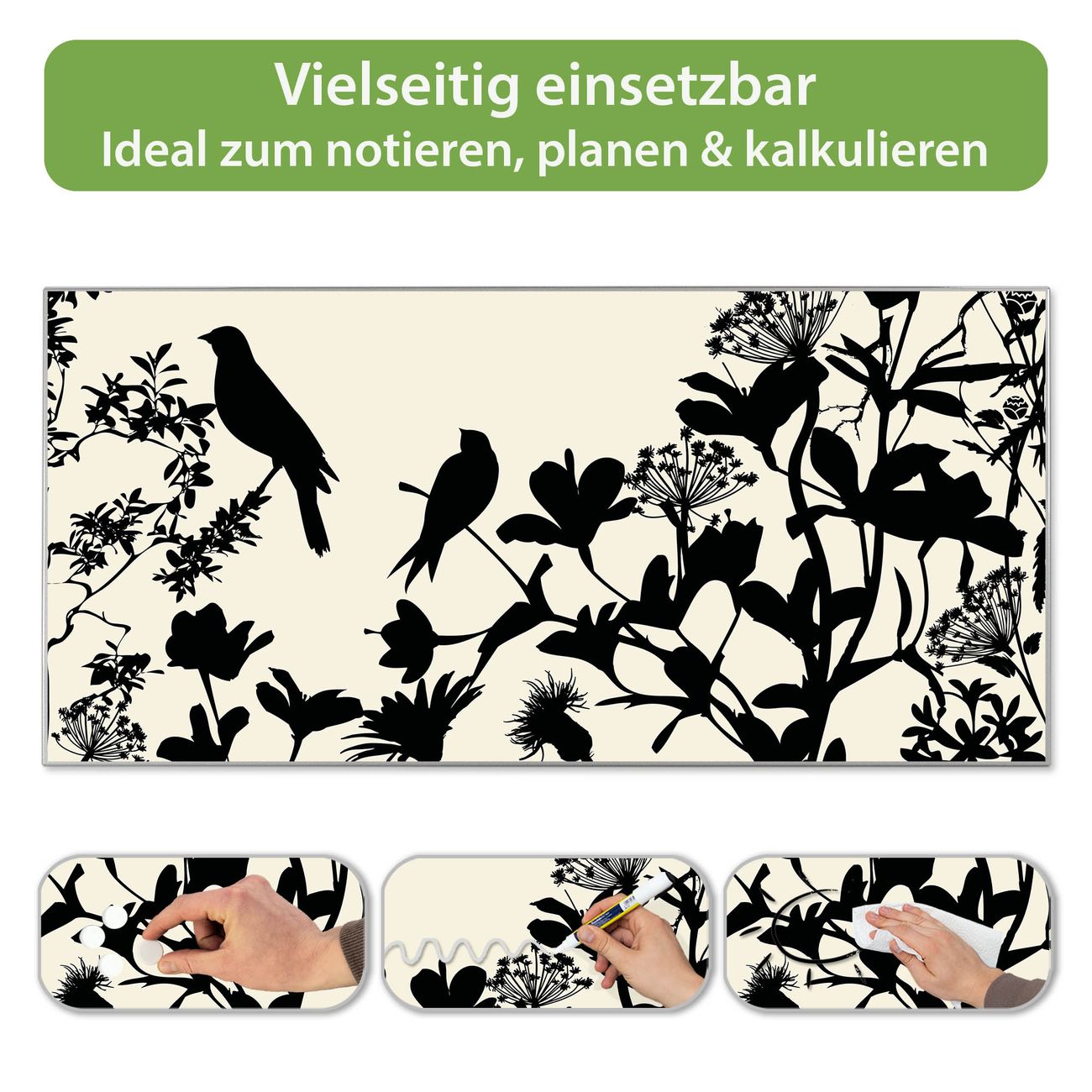 Metall Magnettafel beschreibbar 78x37cm Motiv Vögel Schattenriß