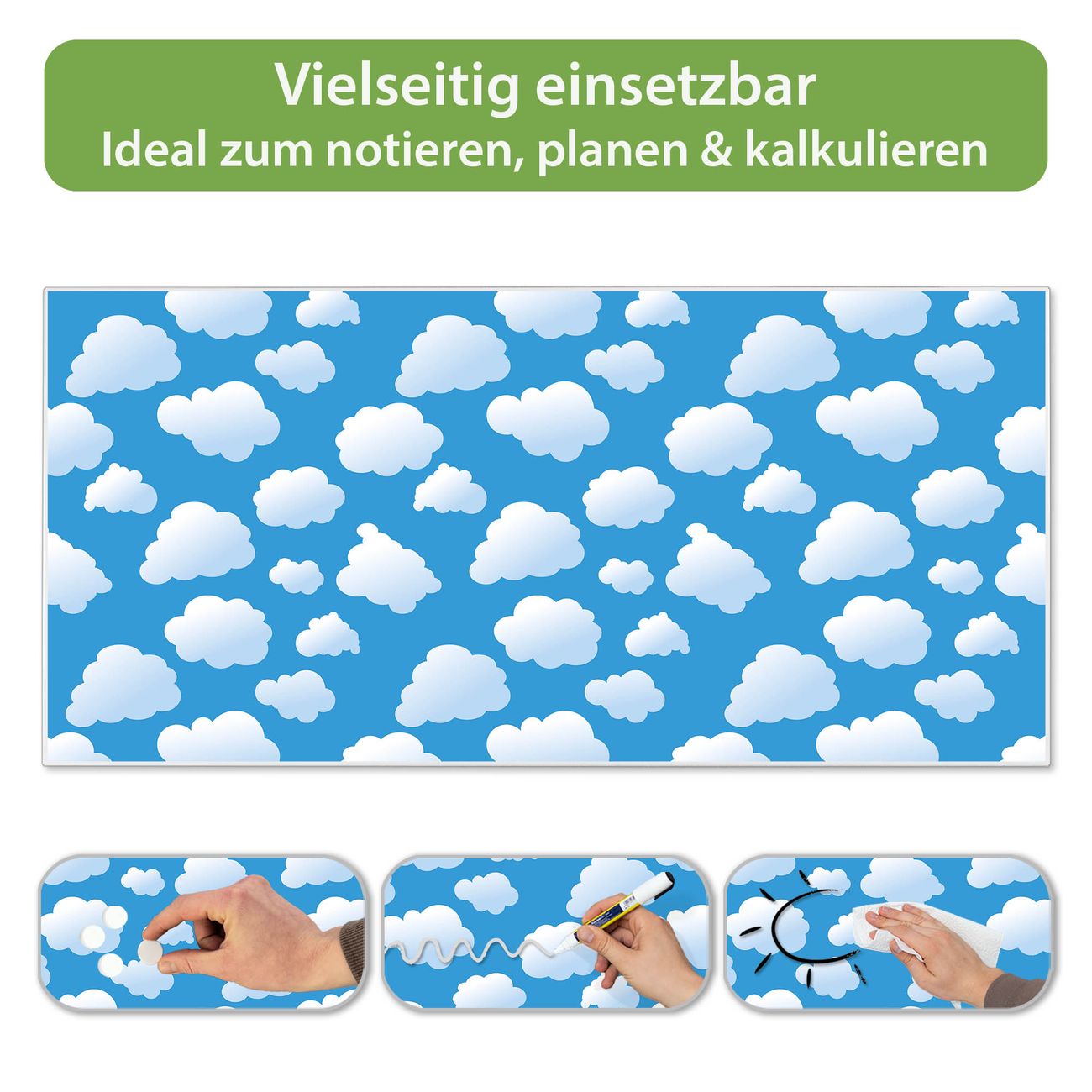 Metall Magnettafel beschreibbar 78x37cm Motiv Wölkchen