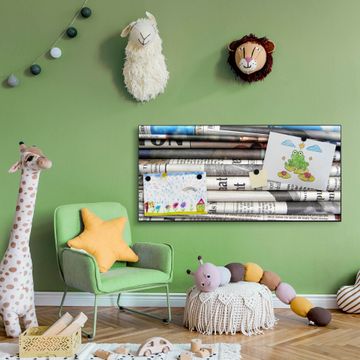 FUNKTION:  Die banjado Magnettafel mit Motiv Zeitungen Motiv bringt Ordnung in Ihr Zettelchaos. Fotos, Termine, Notizen oder Rezepte lassen Sich hier stilvoll mit Magneten ordnen, Sie behalten alles im Blick. An der Design Magnetwand halten alle handesüblichen Magnete. DESIGN:  Die Metall Pinnwand mit dem Motiv Motiv Zeitungen ist ein eleganter Begleiter im Alltag. Mit dieser Magnettafel haben Sie auch ohne Notizen und Magnete ein schönes Dekoelement. Das Format bietet Ihnen ausreichend Platz um alle wichtigen Informationen im Blick zu behalten. DETAILS: Die magnetische Pinnwand besteht aus silber-grau, weiß oder schwarz lackiertem Stahl. Sie hat eine Größe von 78cm x 37cm. Es befinden sich auf der Rückseite vorgefertigte Löcher die eine schnelle und unkomplizierte Anbringung ermöglichen. Das Motiv ist mit einem seidenmatten Laminat versehen und schützt so zusätzlich vor Kratzern. NUTZEN:  Sie können diese Magnettafel wunderbar als Wandbild nutzen, es halten alle handelsüblichen Magneten daran. Das Memoboard ist mit einem feuchten Lappen oder Schwamm abwischbar. Sie finden bei uns eine große Auswahl an passenden Magneten. BANJADO:  Wir sind ein kleines Team aus dem Herzen von Sachsen. Wir fertigen alle Artikel von Hand für Sie an, Sie erhalten keine preiswerte Importware. Auf Wunsch können Sie auch Ihr eigenes Foto auf die Magnettafel aufbringen, schreiben Sie uns an. Herzlichst, Ihr banjado-Team