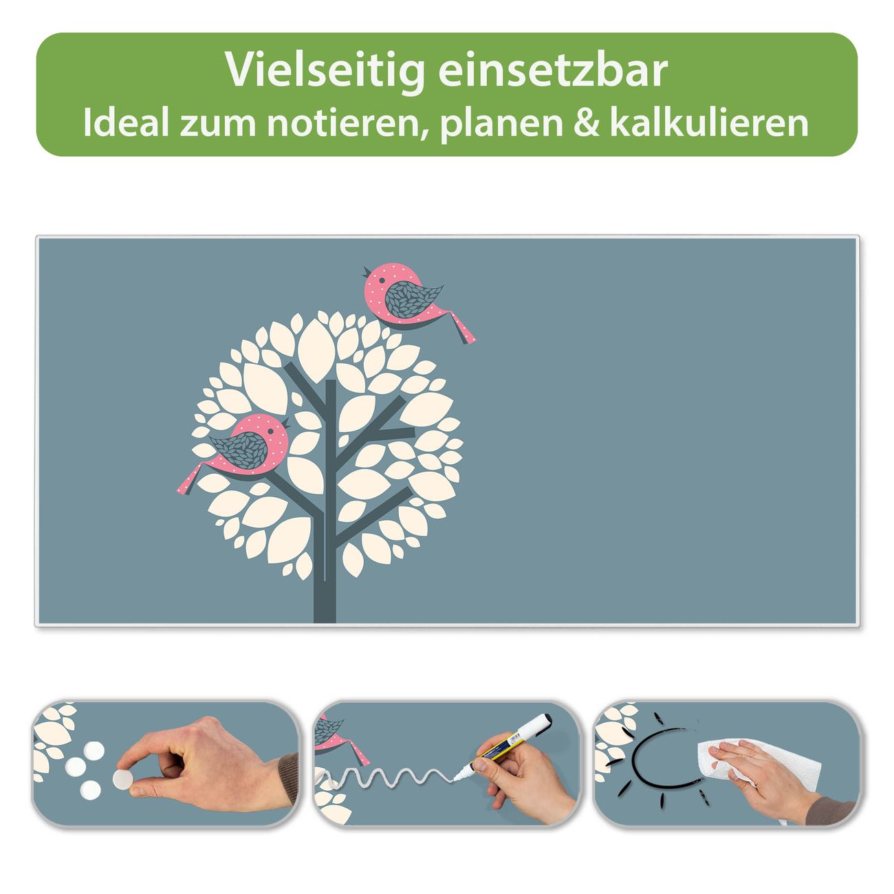 Metall Magnettafel beschreibbar 78x37cm Motiv Zwei Rosa Vögel