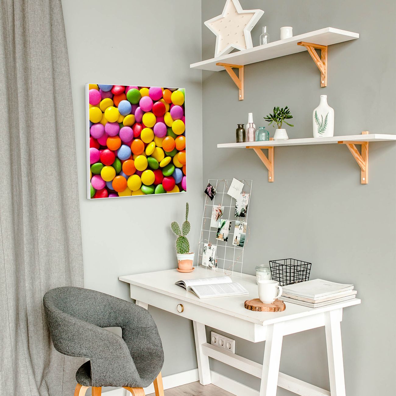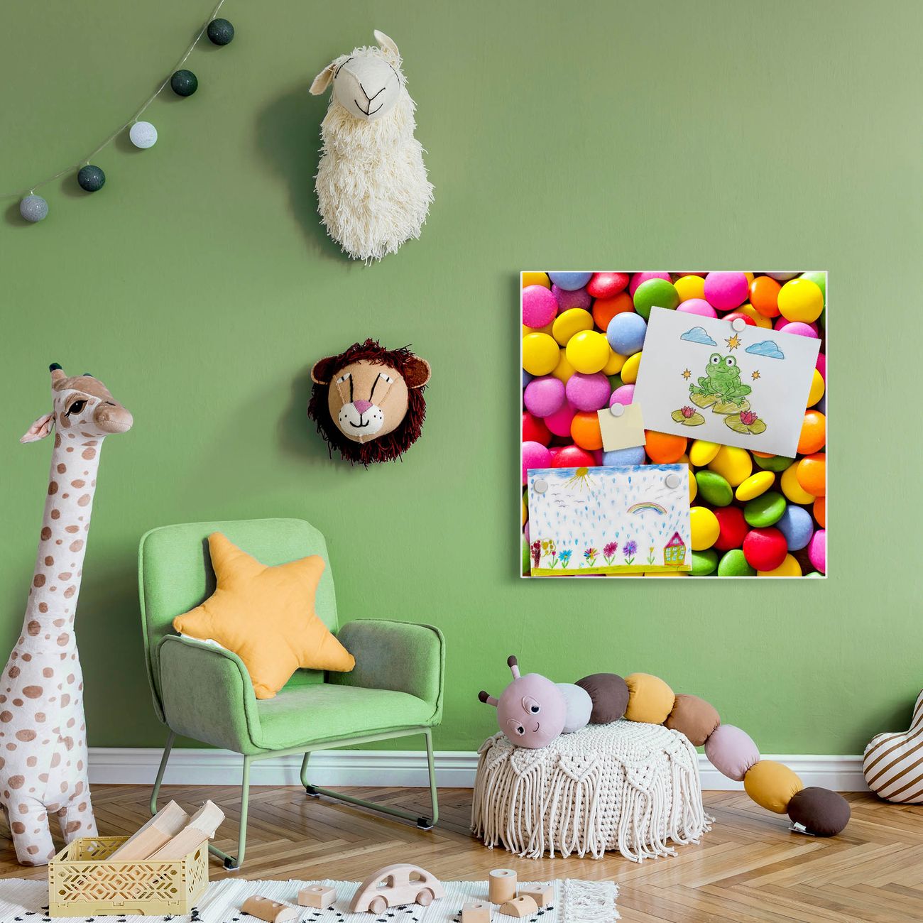Die banjado Design Magnettafel mit Motiv Motiv Dragees bringt Ordnung in Ihr Zettelchaos. Fotos, Termine, Notizen oder Rezepte lassen Sich hier stilvoll mit Magneten ordnen, Sie behalten alles im Blick. An der Pinnwand halten alle handelsüblichen Magnete. Mit dieser Pinnwand aus Metall haben Sie auch ohne Notizen und Magnete ein schönes Dekoelement. Das Quadratische Format bietet Ihnen ausreichend Platz um alle wichtigen Informationen im Blick zu behalten.