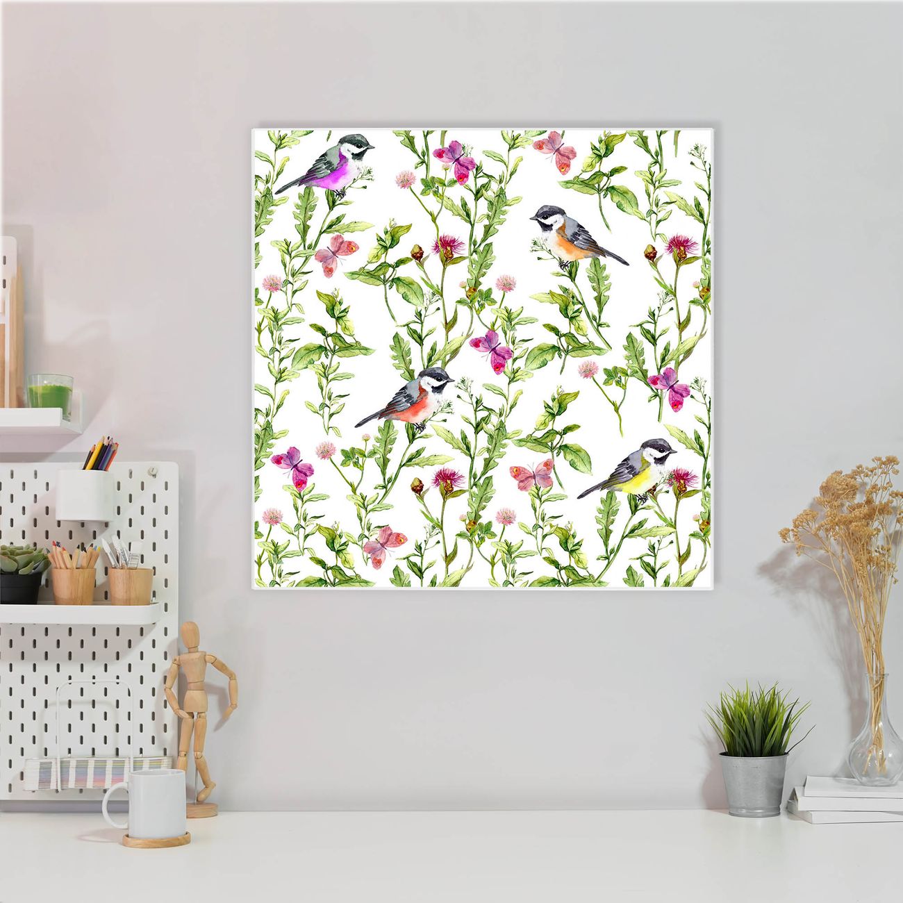 Stahl Magnettafel 50x50cm Meisen im Klee