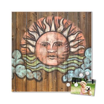 Die banjado Design Magnettafel mit Motiv Motiv Sonne bringt Ordnung in Ihr Zettelchaos. Fotos, Termine, Notizen oder Rezepte lassen Sich hier stilvoll mit Magneten ordnen, Sie behalten alles im Blick. An der Pinnwand halten alle handelsüblichen Magnete. Mit dieser Pinnwand aus Metall haben Sie auch ohne Notizen und Magnete ein schönes Dekoelement. Das Quadratische Format bietet Ihnen ausreichend Platz um alle wichtigen Informationen im Blick zu behalten.