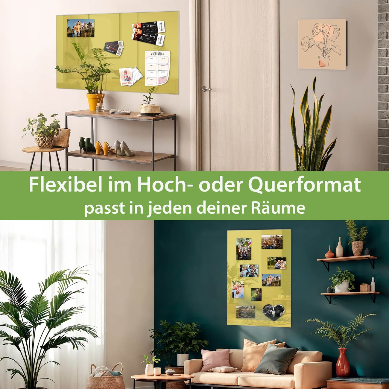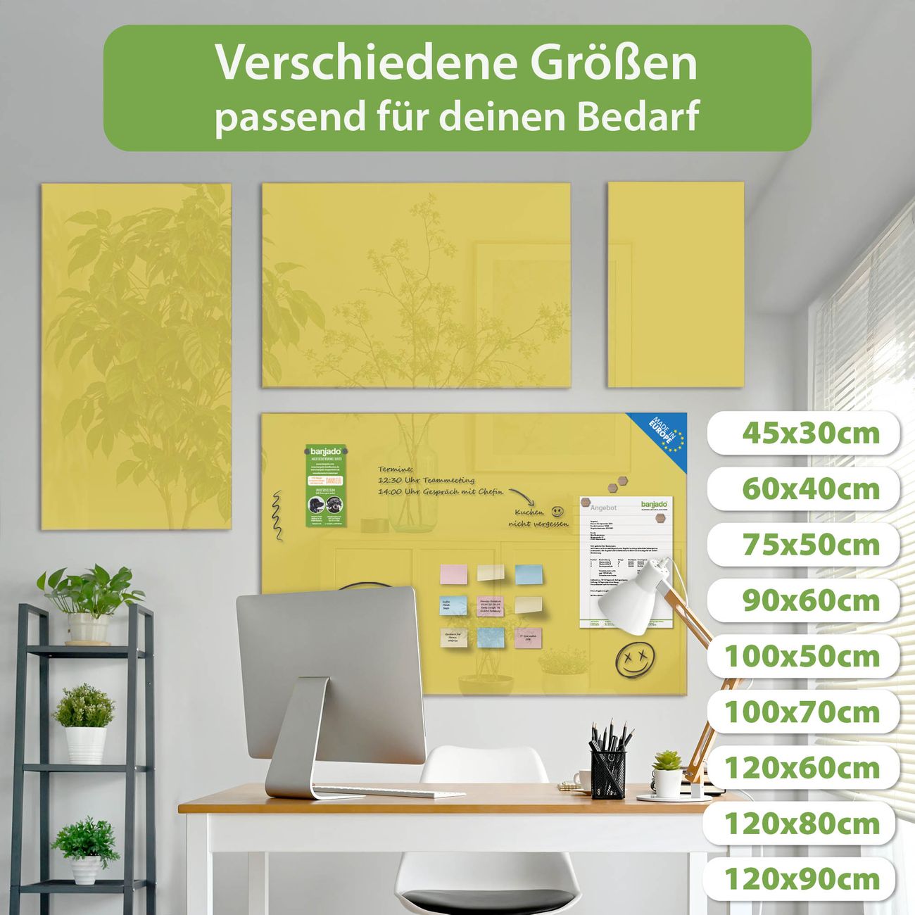Die banjado Glas Magnettafel mit dem Motiv Farbe Lemon verbindet Funktionalität mit Stil. Sie ersetzt das Zettelchaos durch klare Strukturen und bringt dabei eine warme, natürliche Atmosphäre in Ihr Zuhause. Ob im Büro, in der Küche oder im Eingangsbereich - dieses Design-Board zieht Blicke an und sorgt für Ordnung mit Charakter.