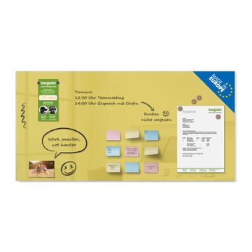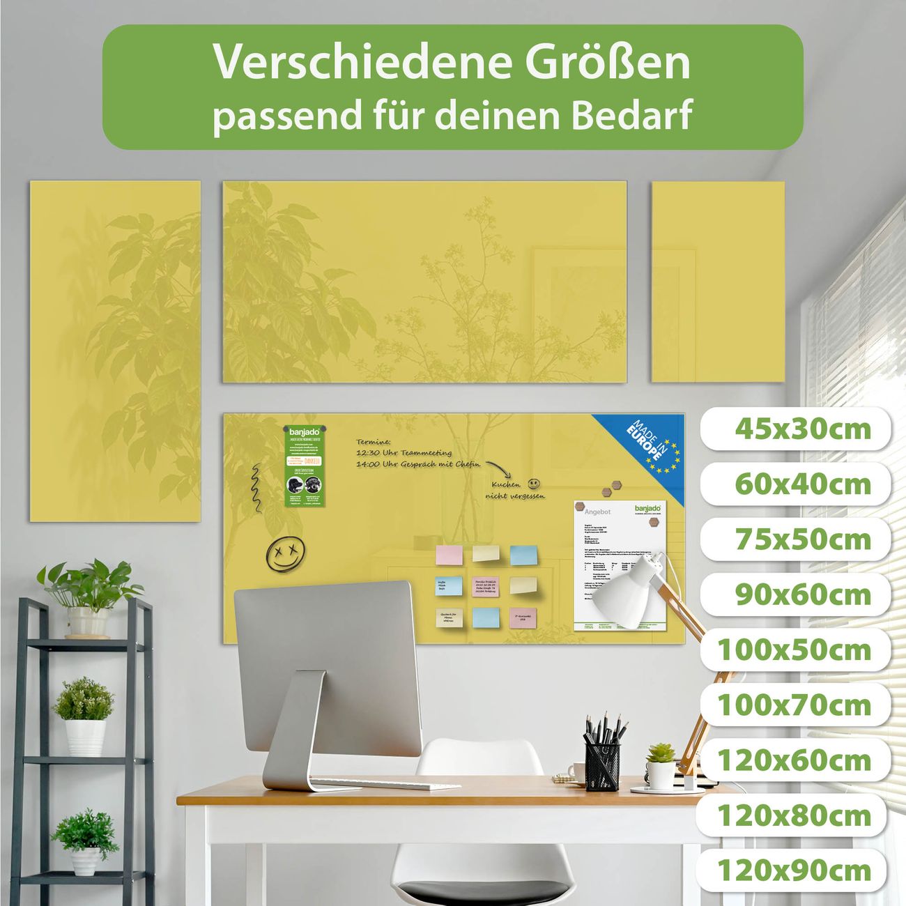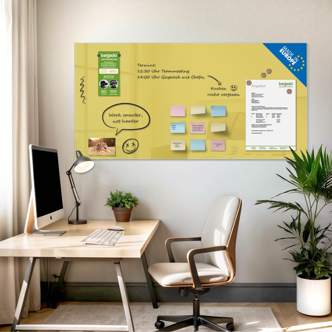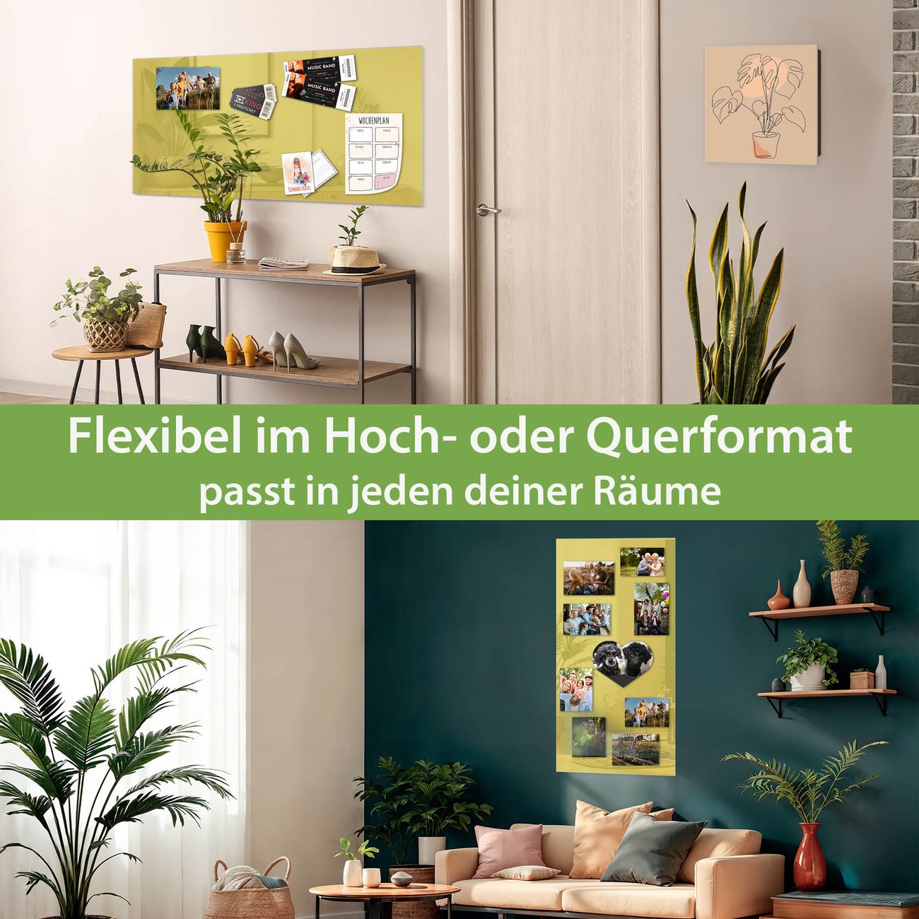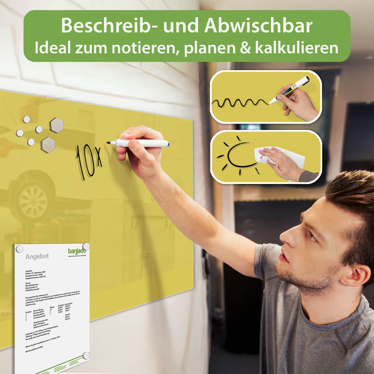 Die banjado Glas Magnettafel mit dem Motiv Farbe Lemon verbindet Funktionalität mit Stil. Sie ersetzt das Zettelchaos durch klare Strukturen und bringt dabei eine warme, natürliche Atmosphäre in Ihr Zuhause. Ob im Büro, in der Küche oder im Eingangsbereich - dieses Design-Board zieht Blicke an und sorgt für Ordnung mit Charakter.