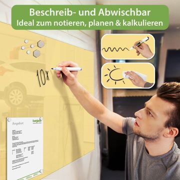 Die banjado Glas Magnettafel mit dem Motiv Farbe Honig verbindet Funktionalität mit Stil. Sie ersetzt das Zettelchaos durch klare Strukturen und bringt dabei eine warme, natürliche Atmosphäre in Ihr Zuhause. Ob im Büro, in der Küche oder im Eingangsbereich - dieses Design-Board zieht Blicke an und sorgt für Ordnung mit Charakter.