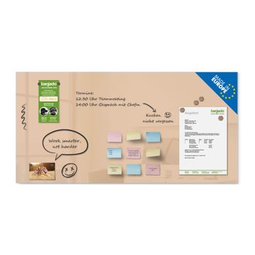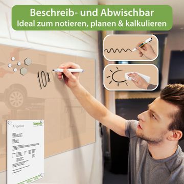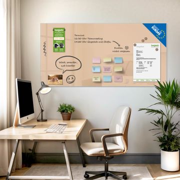 Die banjado Glas Magnettafel mit dem Motiv Farbe Sandstein verbindet Funktionalität mit Stil. Sie ersetzt das Zettelchaos durch klare Strukturen und bringt dabei eine warme, natürliche Atmosphäre in Ihr Zuhause. Ob im Büro, in der Küche oder im Eingangsbereich - dieses Design-Board zieht Blicke an und sorgt für Ordnung mit Charakter.