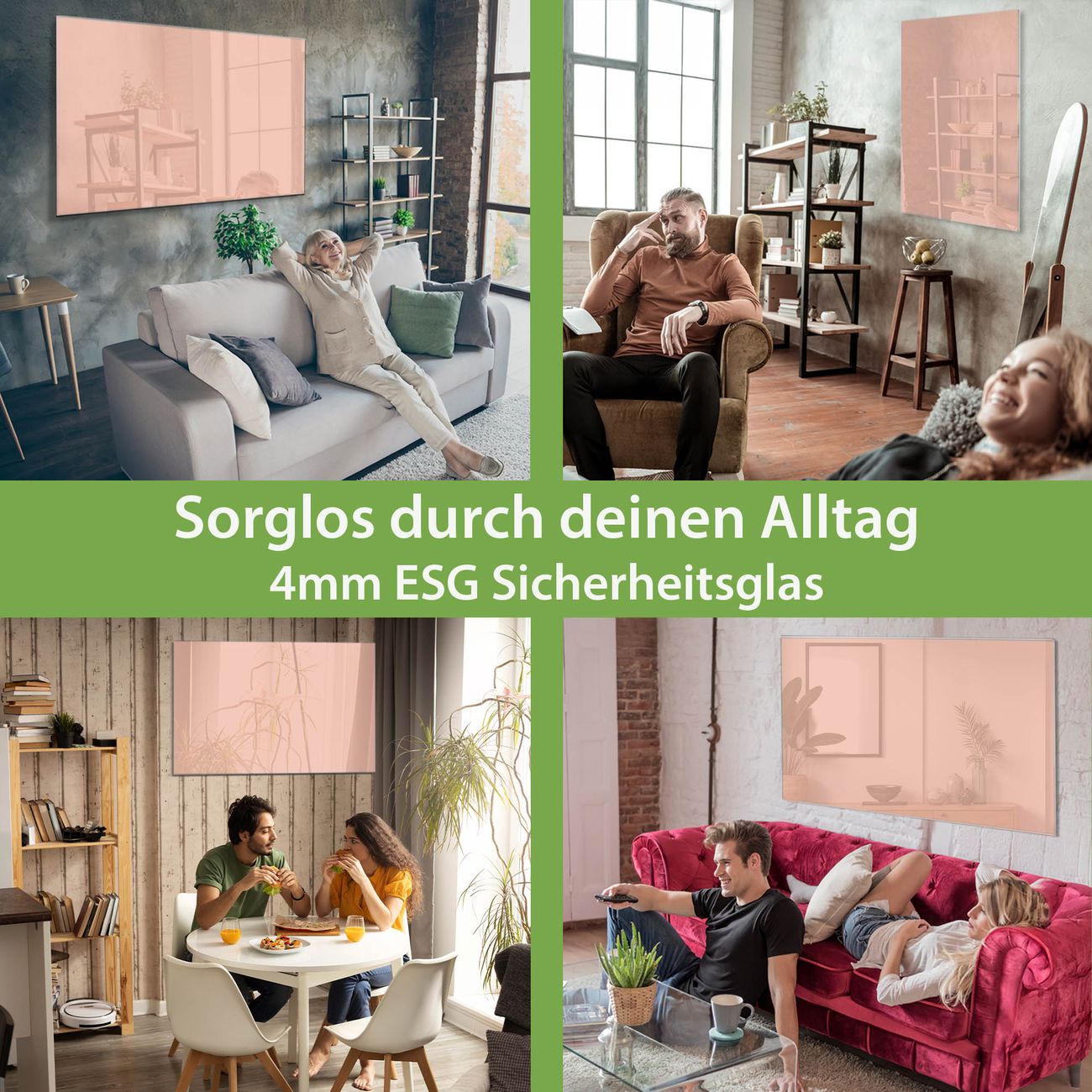 - Material: 4mm Sicherheitsglas mit Metallrückwand