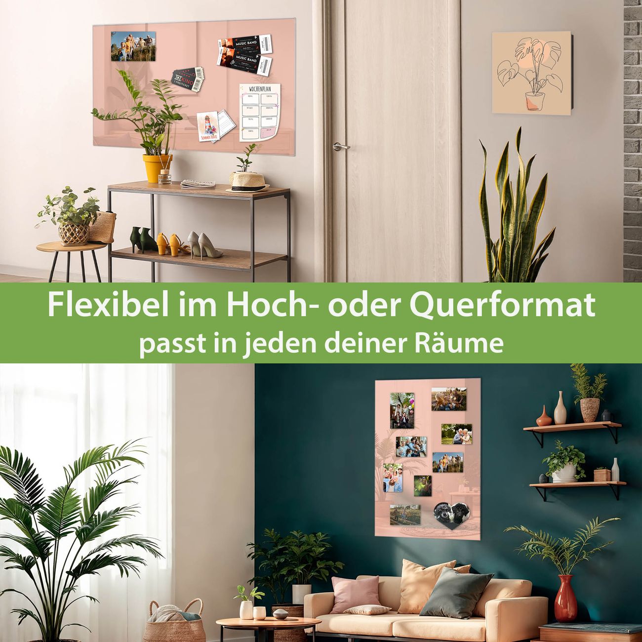 Dank der flachen Bauweise wirkt die Magnetwand fast schwebend an der Wand. Sie können sie mit Montagekleber elegant befestigen oder mit einem passenden Set klassisch verschrauben - beides sorgt für sicheren Halt und eine dezente Optik.
