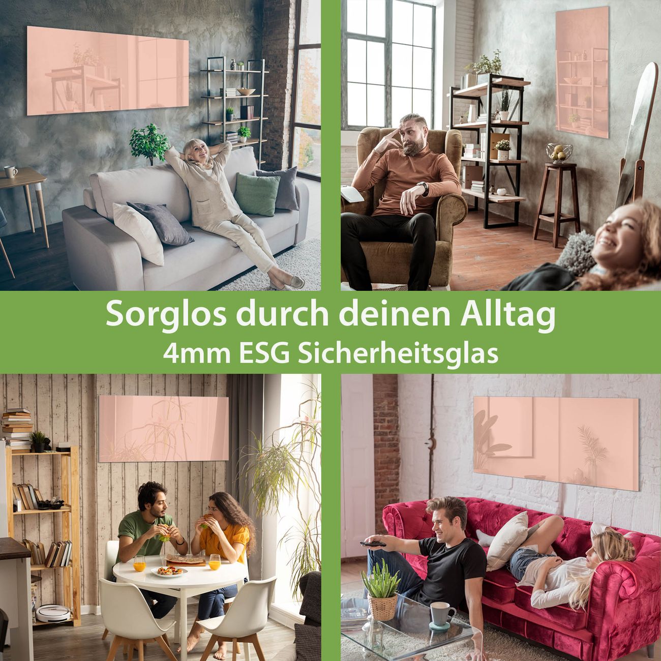 - Material: 4mm Sicherheitsglas mit Metallrückwand