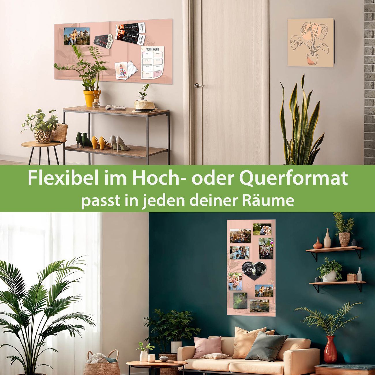 Dank der flachen Bauweise wirkt die Magnetwand fast schwebend an der Wand. Sie können sie mit Montagekleber elegant befestigen oder mit einem passenden Set klassisch verschrauben - beides sorgt für sicheren Halt und eine dezente Optik.