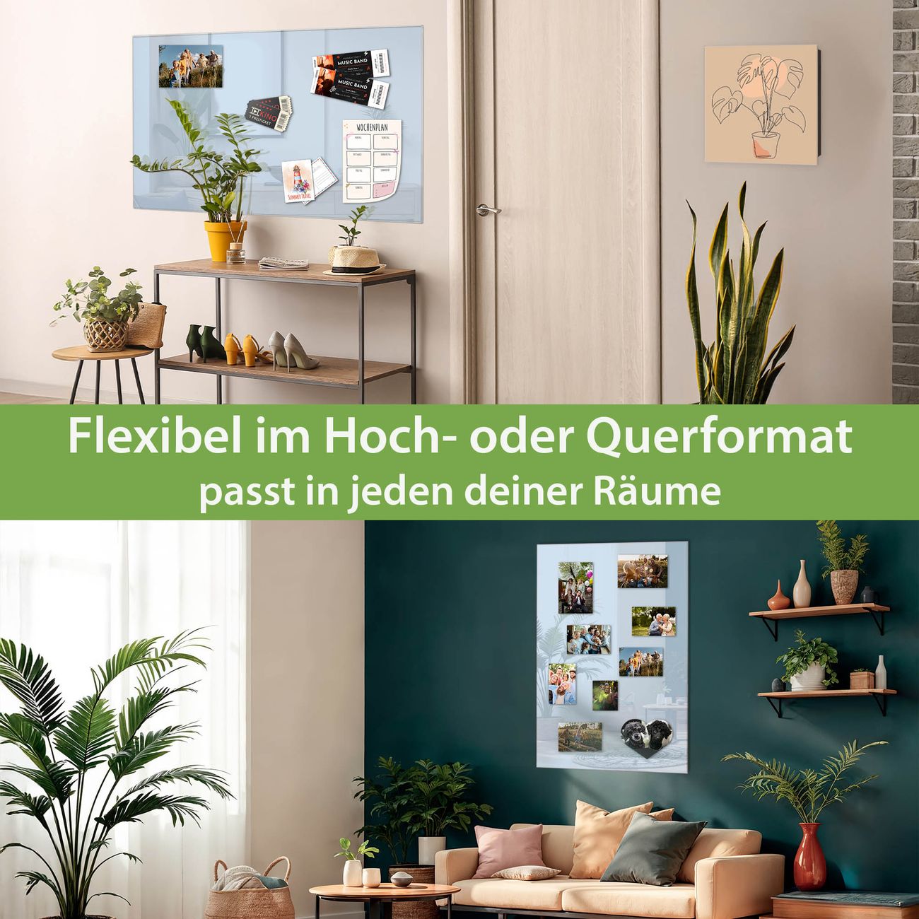 Dank der flachen Bauweise wirkt die Magnetwand fast schwebend an der Wand. Sie können sie mit Montagekleber elegant befestigen oder mit einem passenden Set klassisch verschrauben - beides sorgt für sicheren Halt und eine dezente Optik.
