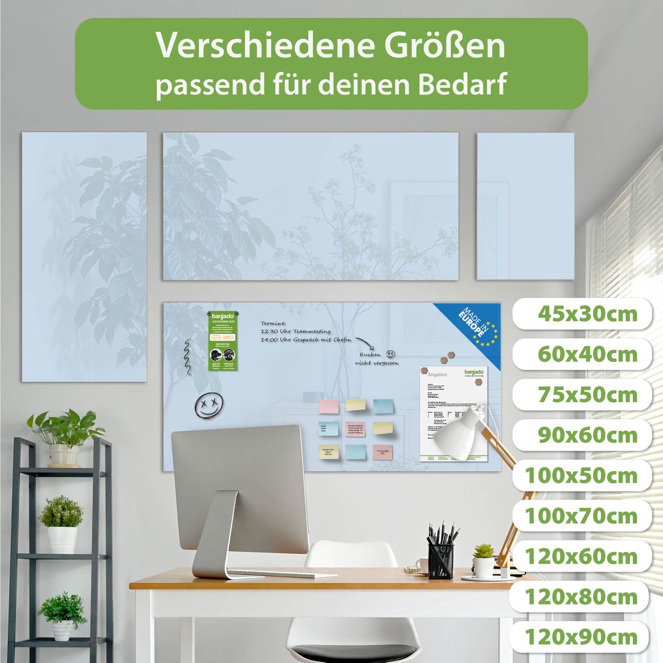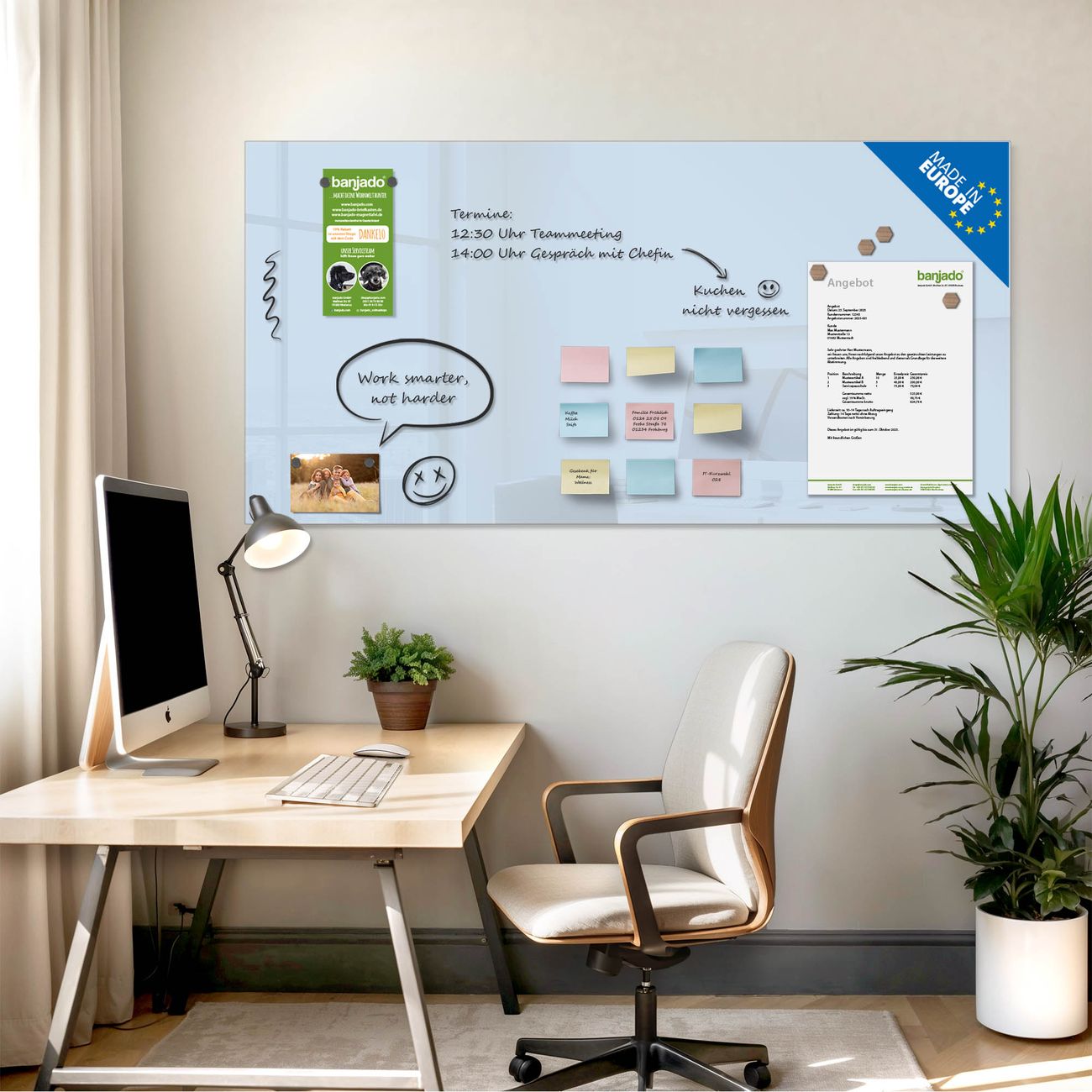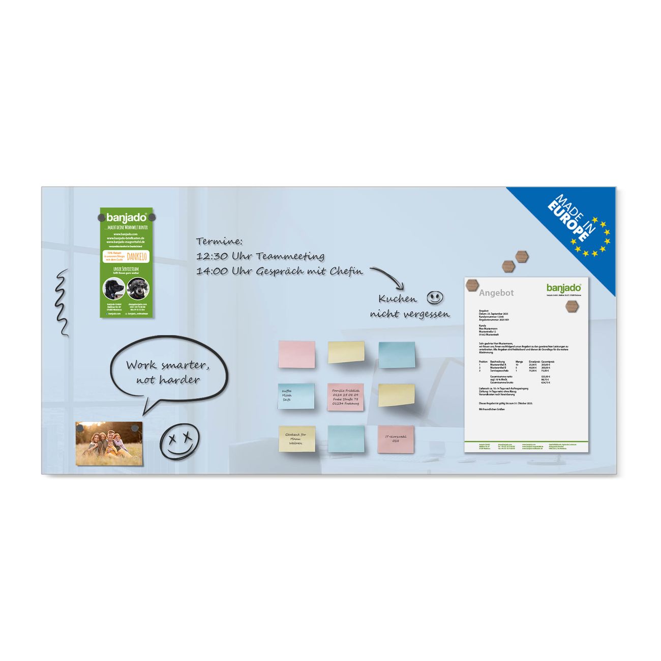Glas Magnettafel im Querformat Farbe Himmelblau
