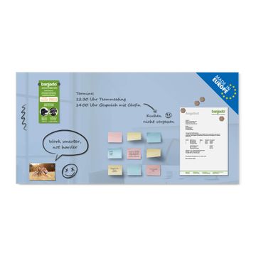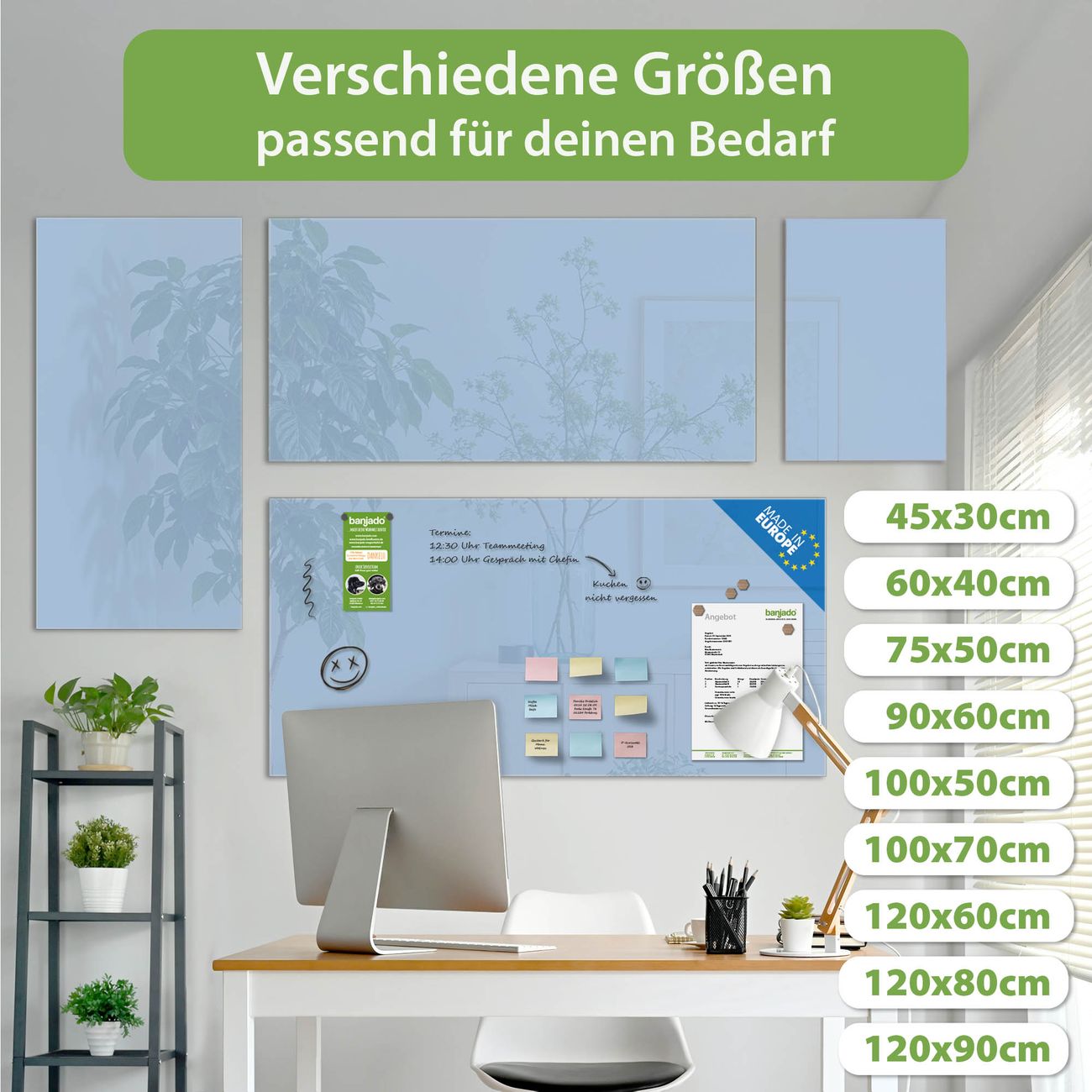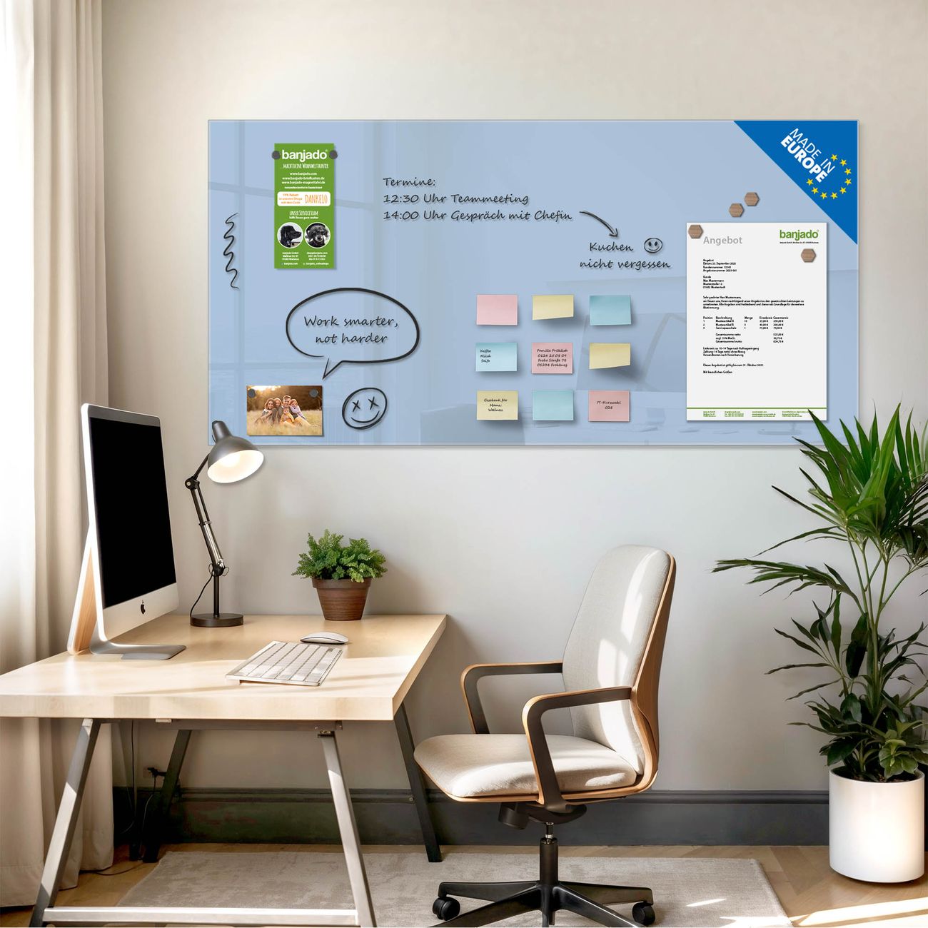 Glas Magnettafel im Querformat Farbe Pastellblau