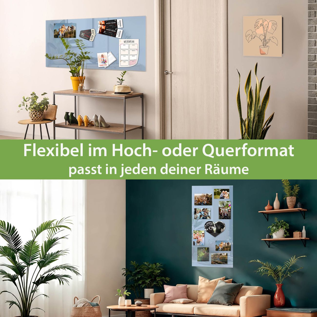 Die banjado Glas Magnettafel mit dem Motiv Farbe Pastellblau verbindet Funktionalität mit Stil. Sie ersetzt das Zettelchaos durch klare Strukturen und bringt dabei eine warme, natürliche Atmosphäre in Ihr Zuhause. Ob im Büro, in der Küche oder im Eingangsbereich - dieses Design-Board zieht Blicke an und sorgt für Ordnung mit Charakter.