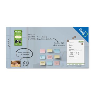 Gefertigt aus gehärtetem Sicherheitsglas mit einer magnetischen Rückwand aus Stahl überzeugt diese Magnettafel durch Stabilität und Langlebigkeit. Die Oberfläche bleibt dauerhaft brillant und pflegeleicht, selbst bei täglicher Nutzung.
