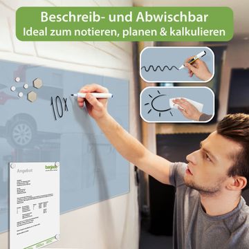 Die banjado Glas Magnettafel mit dem Motiv Farbe Schieferblau verbindet Funktionalität mit Stil. Sie ersetzt das Zettelchaos durch klare Strukturen und bringt dabei eine warme, natürliche Atmosphäre in Ihr Zuhause. Ob im Büro, in der Küche oder im Eingangsbereich - dieses Design-Board zieht Blicke an und sorgt für Ordnung mit Charakter.