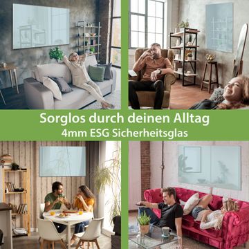 Auf der glatten Glasoberfläche lassen sich Termine, Rezepte oder Notizen ganz einfach mit Kreidestiften festhalten und rückstandslos entfernen. Starke Neodym-Magnete halten Ihre wichtigsten Erinnerungen sicher an Ort und Stelle. So entsteht Ihre ganz persönliche Ideenwand - jeden Tag neu.