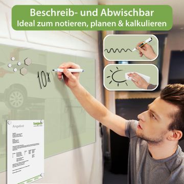 Die banjado Glas Magnettafel mit dem Motiv Farbe Olive verbindet Funktionalität mit Stil. Sie ersetzt das Zettelchaos durch klare Strukturen und bringt dabei eine warme, natürliche Atmosphäre in Ihr Zuhause. Ob im Büro, in der Küche oder im Eingangsbereich - dieses Design-Board zieht Blicke an und sorgt für Ordnung mit Charakter.