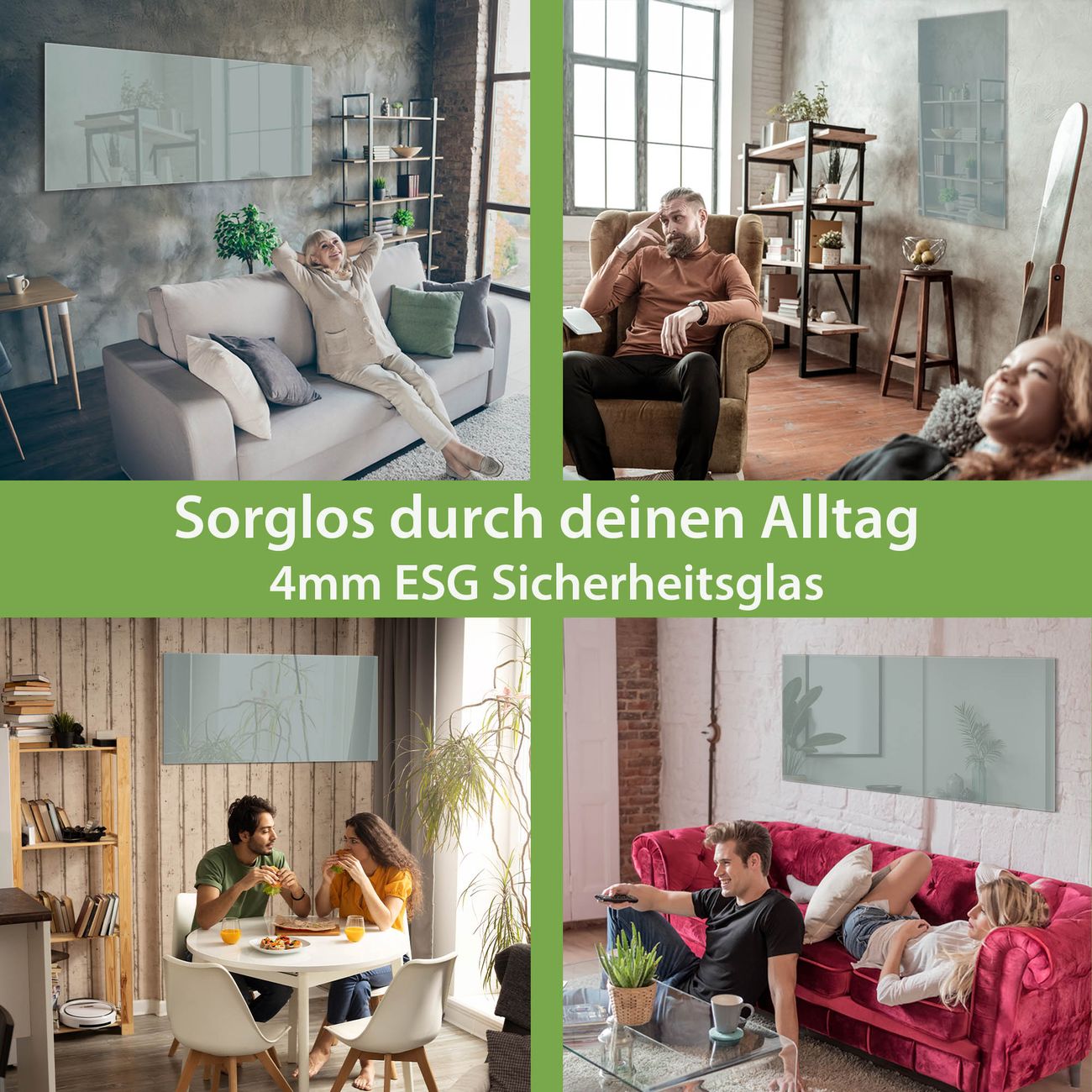 - Material: 4mm Sicherheitsglas mit Metallrückwand
