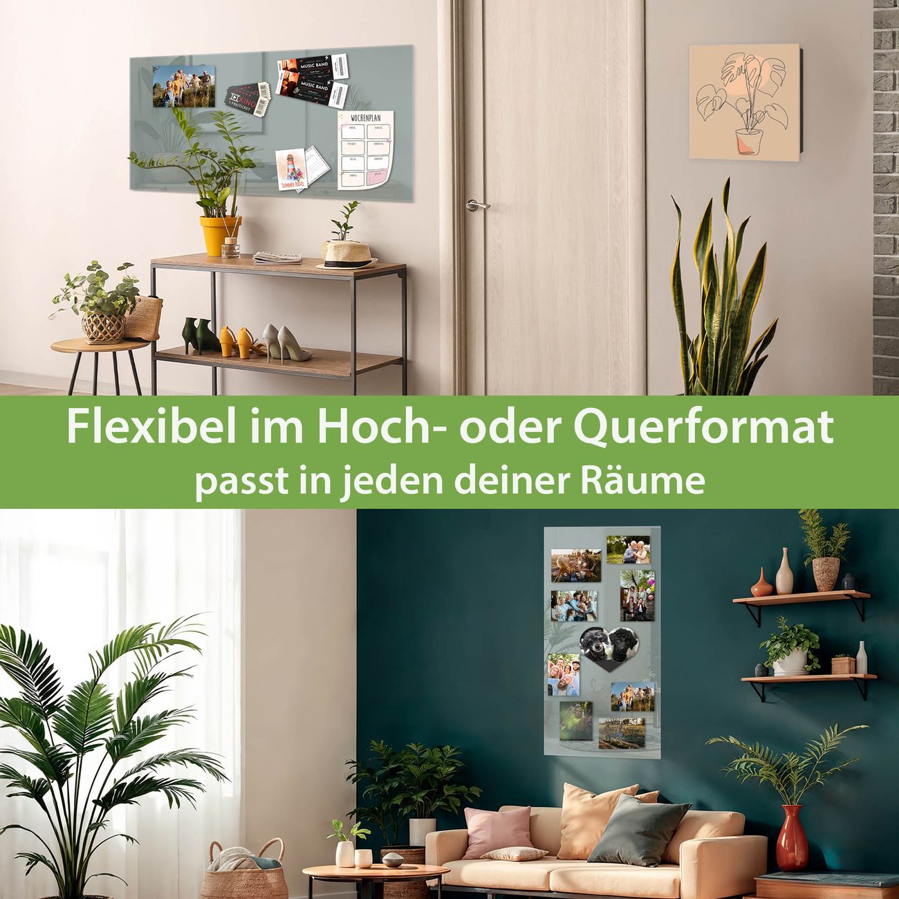 Dank der flachen Bauweise wirkt die Magnetwand fast schwebend an der Wand. Sie können sie mit Montagekleber elegant befestigen oder mit einem passenden Set klassisch verschrauben - beides sorgt für sicheren Halt und eine dezente Optik.