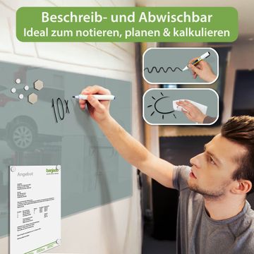 Gefertigt aus gehärtetem Sicherheitsglas mit einer magnetischen Rückwand aus Stahl überzeugt diese Magnettafel durch Stabilität und Langlebigkeit. Die Oberfläche bleibt dauerhaft brillant und pflegeleicht, selbst bei täglicher Nutzung.