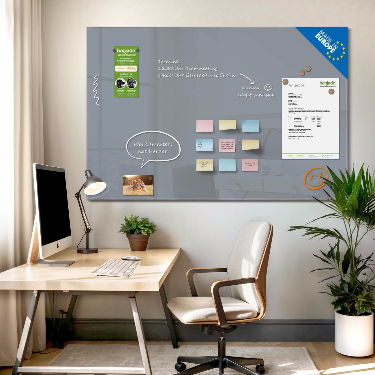 Jede Glas Magnettafel wird in unserer Werkstatt von Hand gefertigt und sorgfältig geprüft. So erhalten Sie ein echtes Qualitätsprodukt, das Funktion und Ästhetik perfekt vereint.?? Warum banjado?
