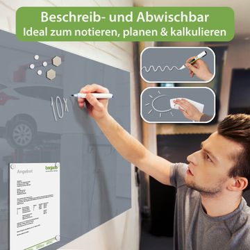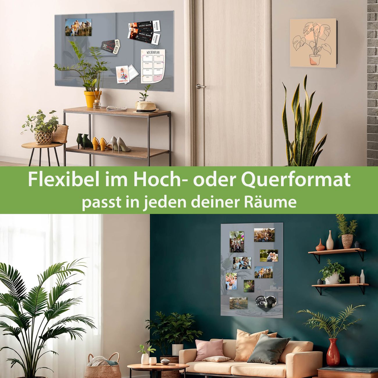 Die banjado Glas Magnettafel mit dem Motiv Farbe Schiefergrau verbindet Funktionalität mit Stil. Sie ersetzt das Zettelchaos durch klare Strukturen und bringt dabei eine warme, natürliche Atmosphäre in Ihr Zuhause. Ob im Büro, in der Küche oder im Eingangsbereich - dieses Design-Board zieht Blicke an und sorgt für Ordnung mit Charakter.