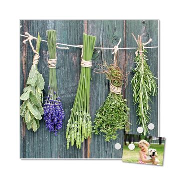 Die banjado Design Magnettafel mit Motiv Motiv Acht Kräuter bringt Ordnung in Ihr Zettelchaos. Fotos, Termine, Notizen oder Rezepte lassen Sich hier stilvoll mit Magneten ordnen, Sie behalten alles im Blick. An der Pinnwand halten alle handelsüblichen Magnete. Mit dieser Pinnwand aus Metall haben Sie auch ohne Notizen und Magnete ein schönes Dekoelement. Das Quadratische Format bietet Ihnen ausreichend Platz um alle wichtigen Informationen im Blick zu behalten.