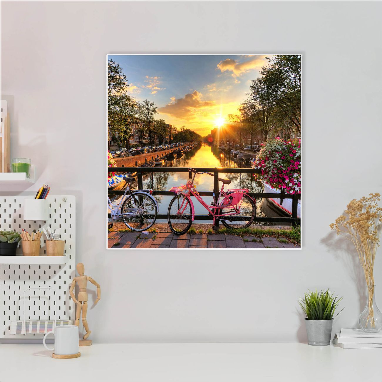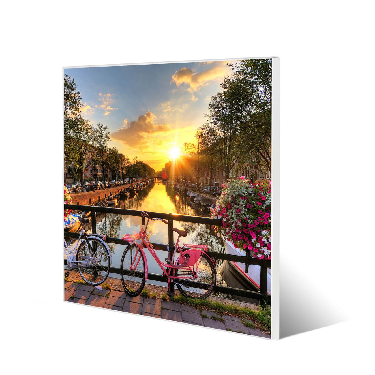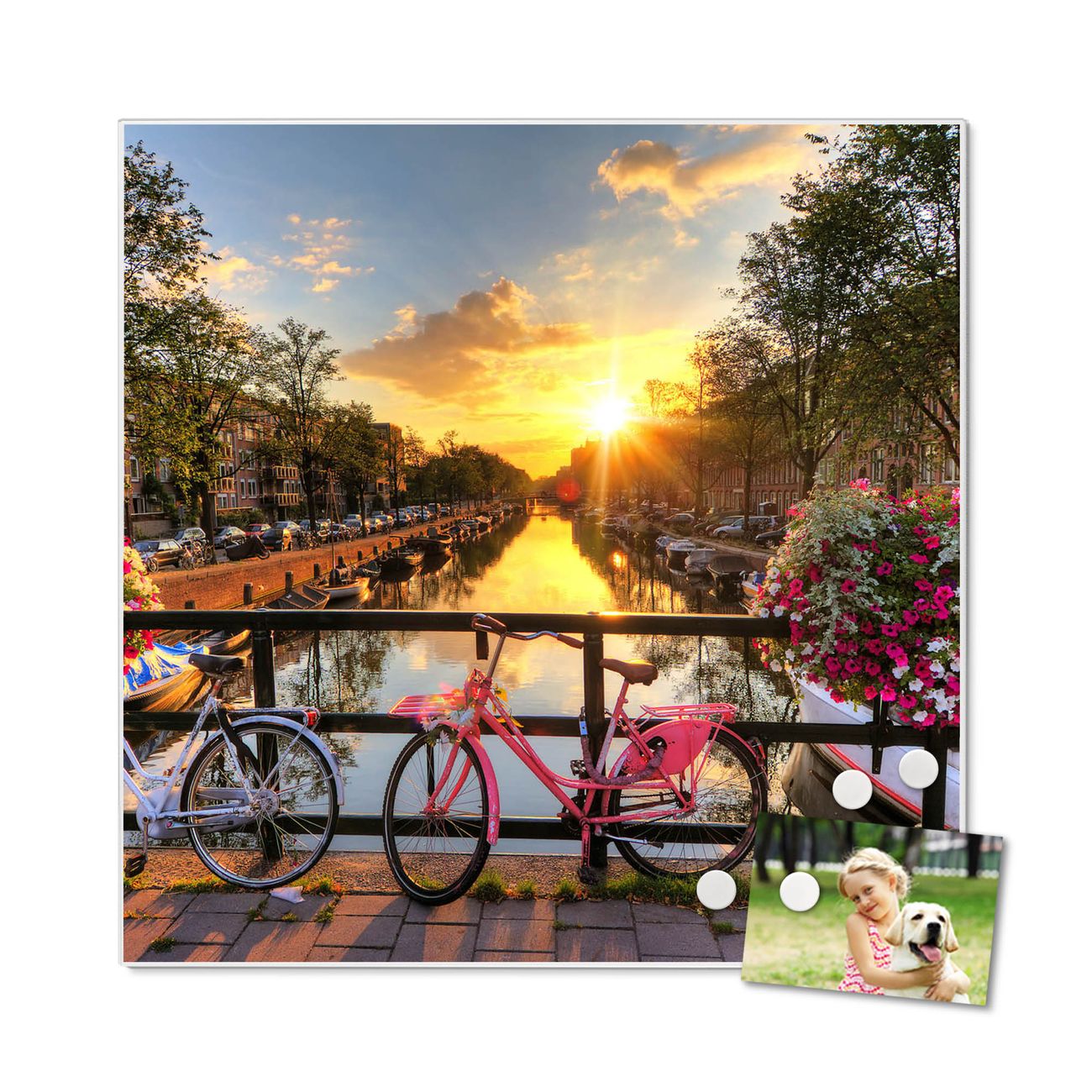 Die banjado Design Magnettafel mit Motiv Motiv Amsterdam Mit Rad bringt Ordnung in Ihr Zettelchaos. Fotos, Termine, Notizen oder Rezepte lassen Sich hier stilvoll mit Magneten ordnen, Sie behalten alles im Blick. An der Pinnwand halten alle handelsüblichen Magnete. Mit dieser Pinnwand aus Metall haben Sie auch ohne Notizen und Magnete ein schönes Dekoelement. Das Quadratische Format bietet Ihnen ausreichend Platz um alle wichtigen Informationen im Blick zu behalten.