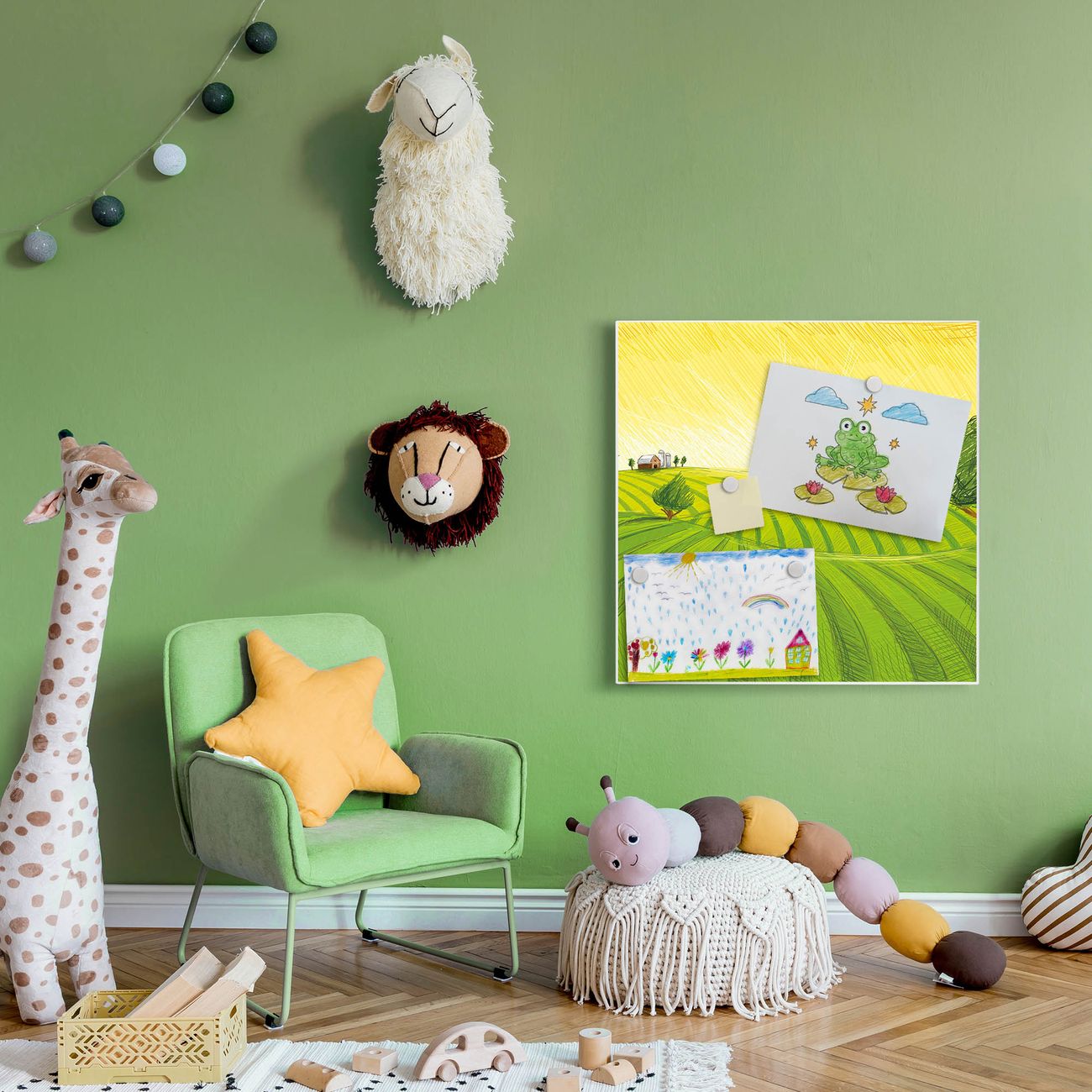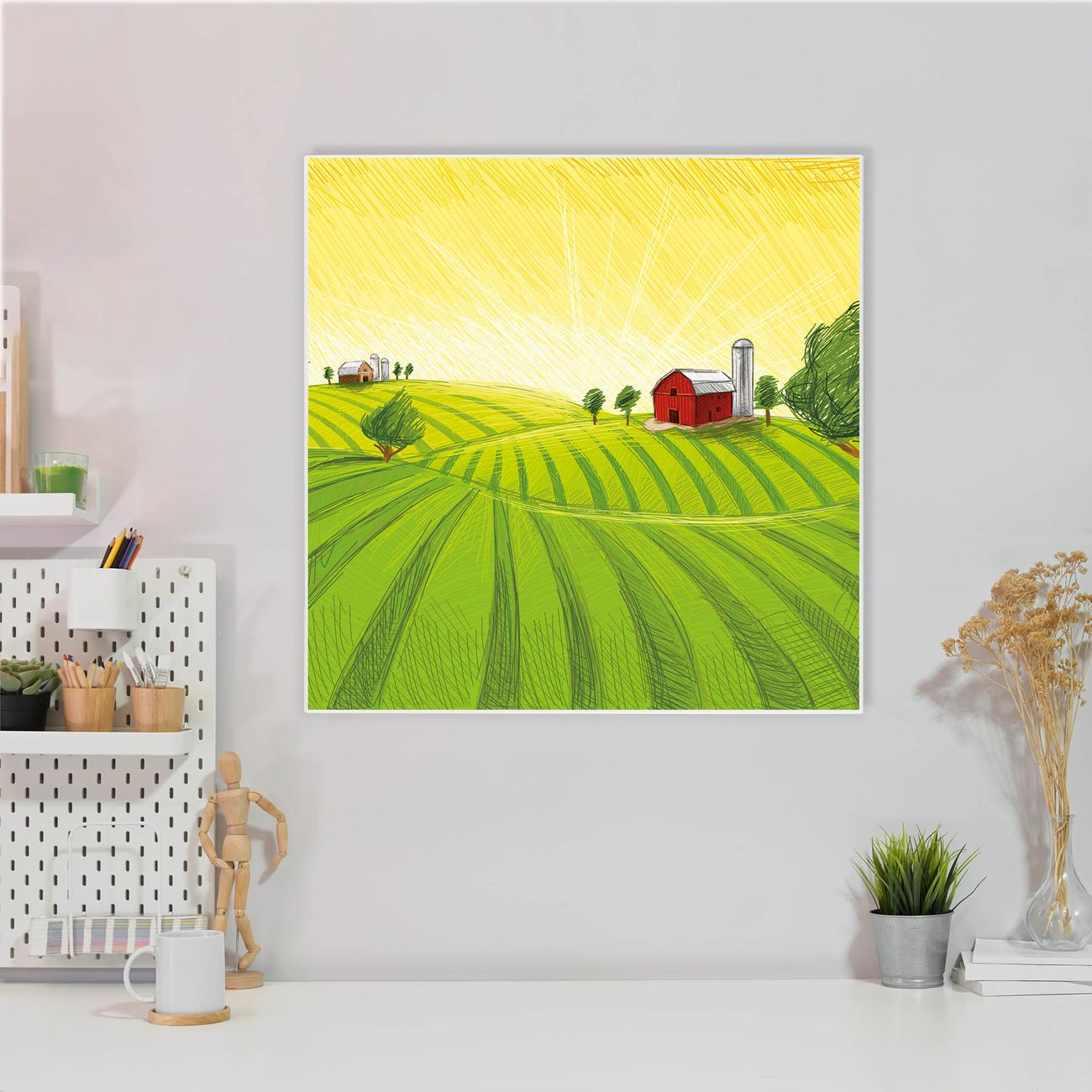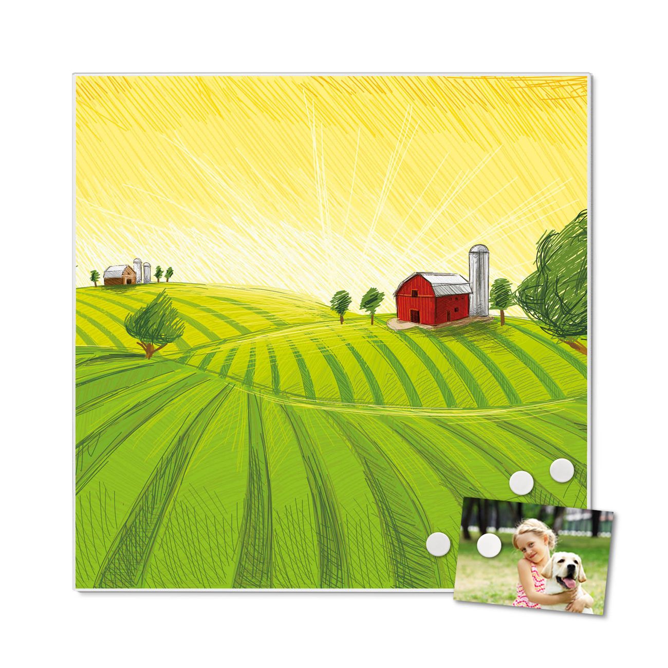 Die banjado Design Magnettafel mit Motiv Motiv Auf dem Land bringt Ordnung in Ihr Zettelchaos. Fotos, Termine, Notizen oder Rezepte lassen Sich hier stilvoll mit Magneten ordnen, Sie behalten alles im Blick. An der Pinnwand halten alle handelsüblichen Magnete. Mit dieser Pinnwand aus Metall haben Sie auch ohne Notizen und Magnete ein schönes Dekoelement. Das Quadratische Format bietet Ihnen ausreichend Platz um alle wichtigen Informationen im Blick zu behalten.