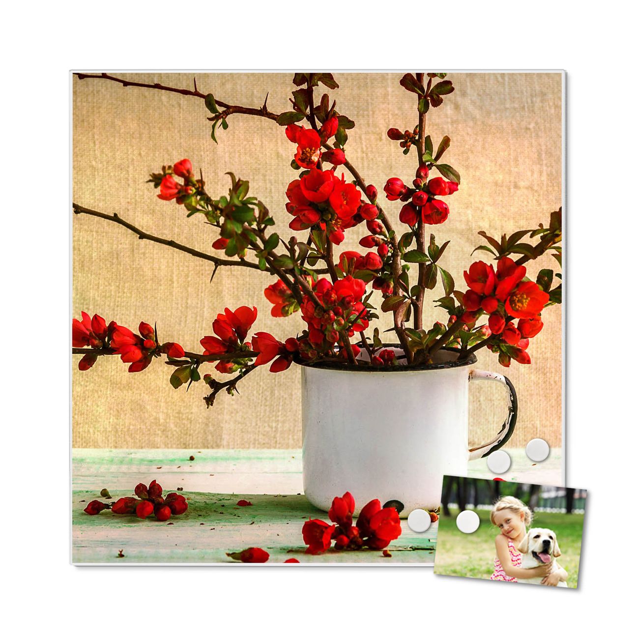 Die banjado Design Magnettafel mit Motiv Motiv Berberitzen bringt Ordnung in Ihr Zettelchaos. Fotos, Termine, Notizen oder Rezepte lassen Sich hier stilvoll mit Magneten ordnen, Sie behalten alles im Blick. An der Pinnwand halten alle handelsüblichen Magnete. Mit dieser Pinnwand aus Metall haben Sie auch ohne Notizen und Magnete ein schönes Dekoelement. Das Quadratische Format bietet Ihnen ausreichend Platz um alle wichtigen Informationen im Blick zu behalten.