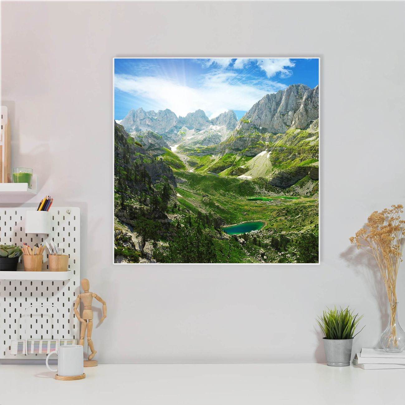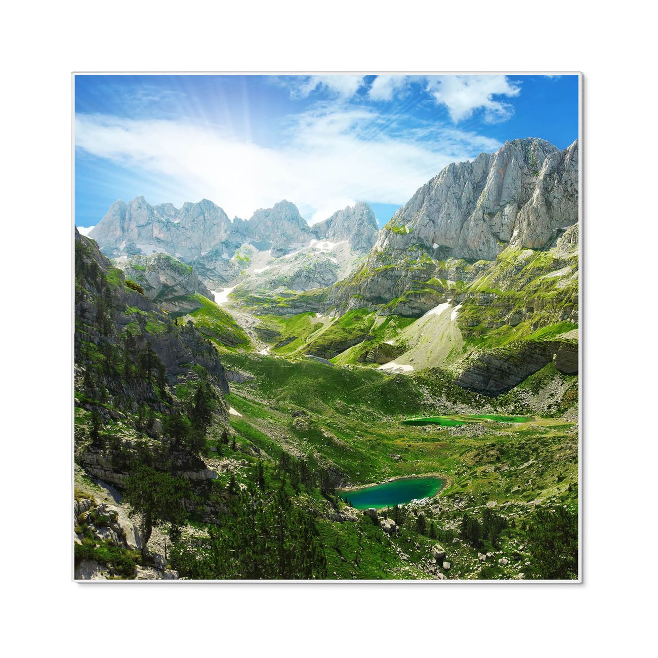 Stahl Magnettafel 50x50cm Bergsee Alpen