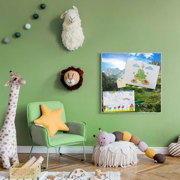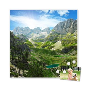 Die banjado Design Magnettafel mit Motiv Motiv Bergsee Alpen bringt Ordnung in Ihr Zettelchaos. Fotos, Termine, Notizen oder Rezepte lassen Sich hier stilvoll mit Magneten ordnen, Sie behalten alles im Blick. An der Pinnwand halten alle handelsüblichen Magnete. Mit dieser Pinnwand aus Metall haben Sie auch ohne Notizen und Magnete ein schönes Dekoelement. Das Quadratische Format bietet Ihnen ausreichend Platz um alle wichtigen Informationen im Blick zu behalten.