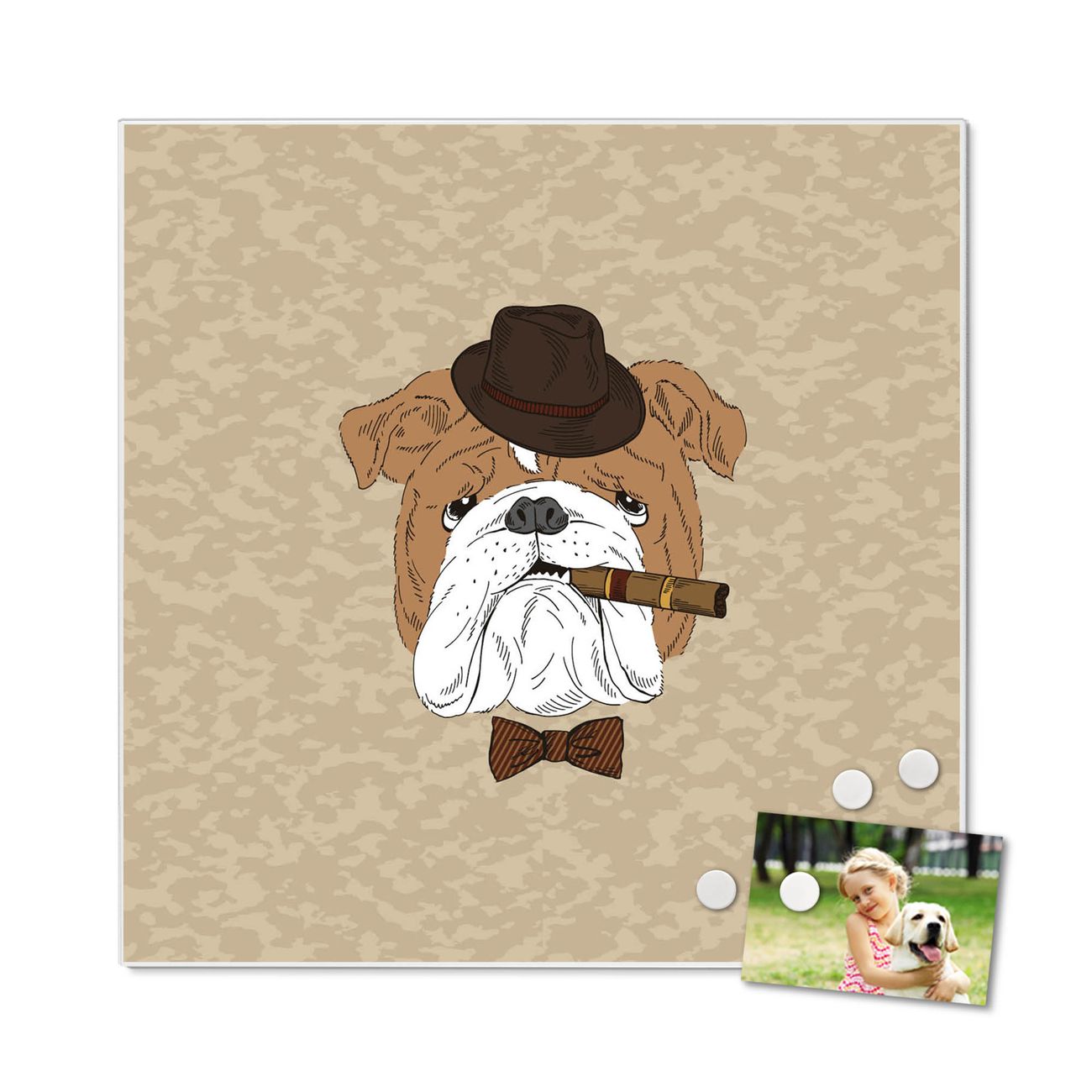 Die banjado Design Magnettafel mit Motiv Motiv Big Daddy bringt Ordnung in Ihr Zettelchaos. Fotos, Termine, Notizen oder Rezepte lassen Sich hier stilvoll mit Magneten ordnen, Sie behalten alles im Blick. An der Pinnwand halten alle handelsüblichen Magnete. Mit dieser Pinnwand aus Metall haben Sie auch ohne Notizen und Magnete ein schönes Dekoelement. Das Quadratische Format bietet Ihnen ausreichend Platz um alle wichtigen Informationen im Blick zu behalten.