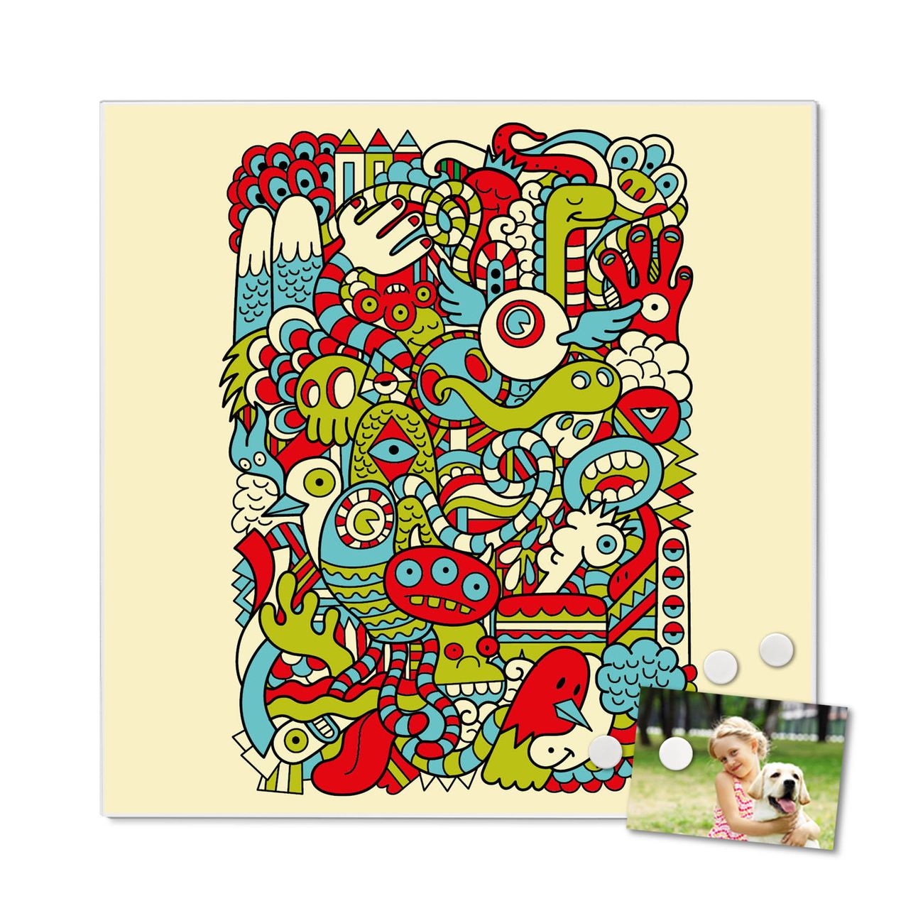 Die banjado Design Magnettafel mit Motiv Motiv Birds Worms Freaks bringt Ordnung in Ihr Zettelchaos. Fotos, Termine, Notizen oder Rezepte lassen Sich hier stilvoll mit Magneten ordnen, Sie behalten alles im Blick. An der Pinnwand halten alle handelsüblichen Magnete. Mit dieser Pinnwand aus Metall haben Sie auch ohne Notizen und Magnete ein schönes Dekoelement. Das Quadratische Format bietet Ihnen ausreichend Platz um alle wichtigen Informationen im Blick zu behalten.