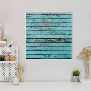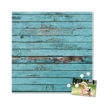 Stahl Magnettafel 50x50cm Blaue Holzlatten