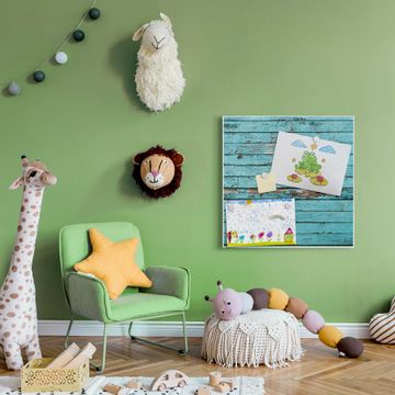Die banjado Design Magnettafel mit Motiv Motiv Blaue Holzlatten bringt Ordnung in Ihr Zettelchaos. Fotos, Termine, Notizen oder Rezepte lassen Sich hier stilvoll mit Magneten ordnen, Sie behalten alles im Blick. An der Pinnwand halten alle handelsüblichen Magnete. Mit dieser Pinnwand aus Metall haben Sie auch ohne Notizen und Magnete ein schönes Dekoelement. Das Quadratische Format bietet Ihnen ausreichend Platz um alle wichtigen Informationen im Blick zu behalten.