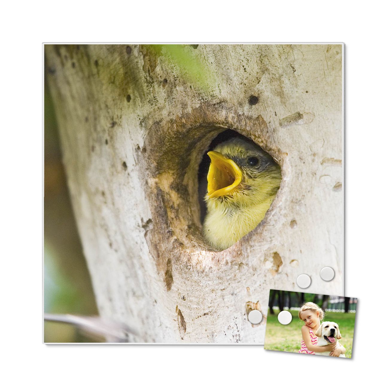 Die banjado Design Magnettafel mit Motiv Motiv Blaumeise bringt Ordnung in Ihr Zettelchaos. Fotos, Termine, Notizen oder Rezepte lassen Sich hier stilvoll mit Magneten ordnen, Sie behalten alles im Blick. An der Pinnwand halten alle handelsüblichen Magnete. Mit dieser Pinnwand aus Metall haben Sie auch ohne Notizen und Magnete ein schönes Dekoelement. Das Quadratische Format bietet Ihnen ausreichend Platz um alle wichtigen Informationen im Blick zu behalten.