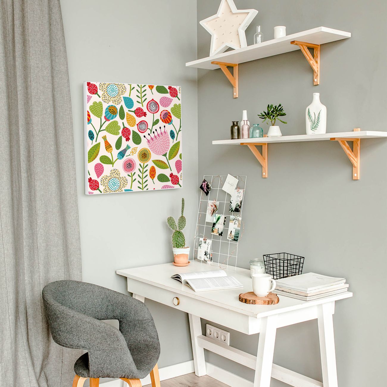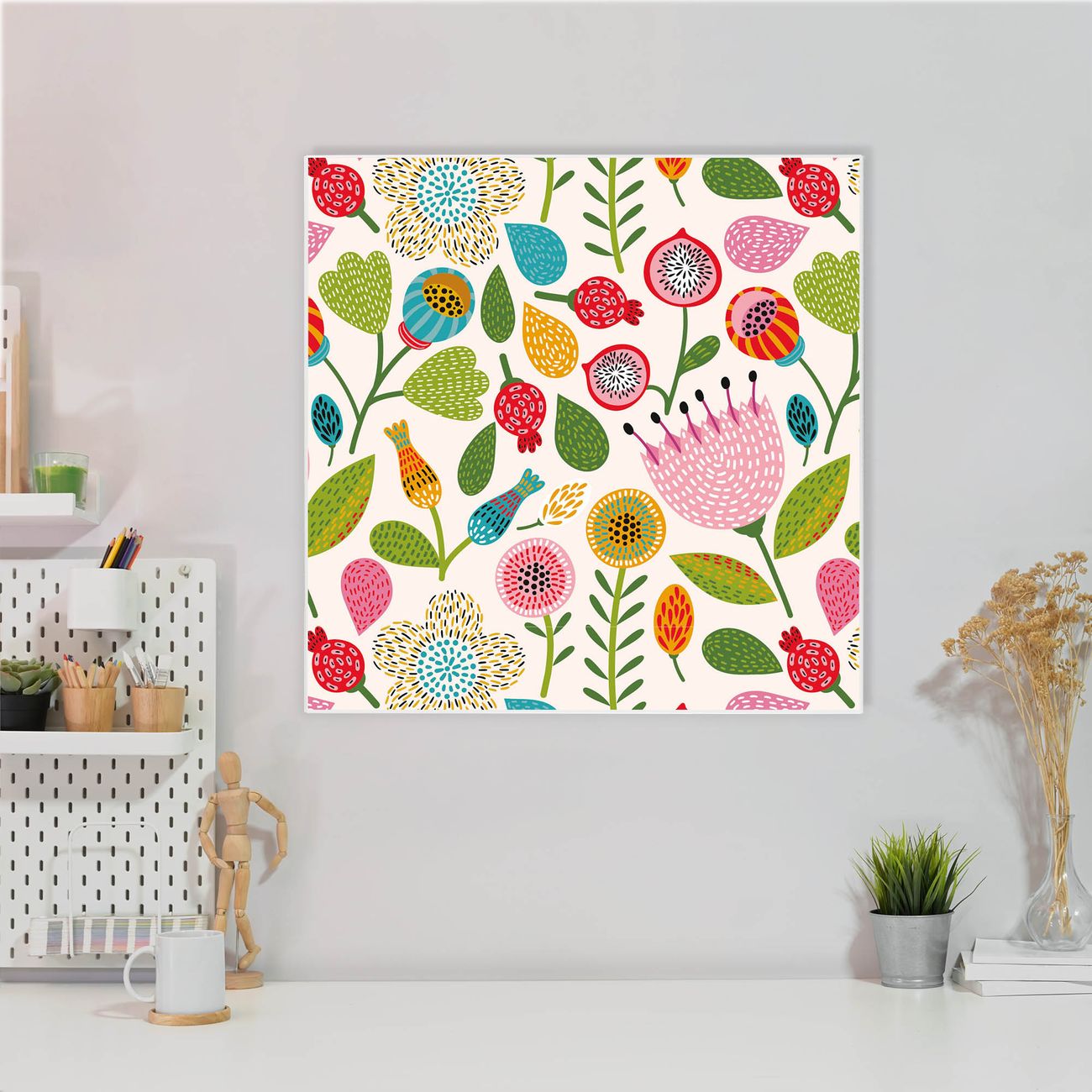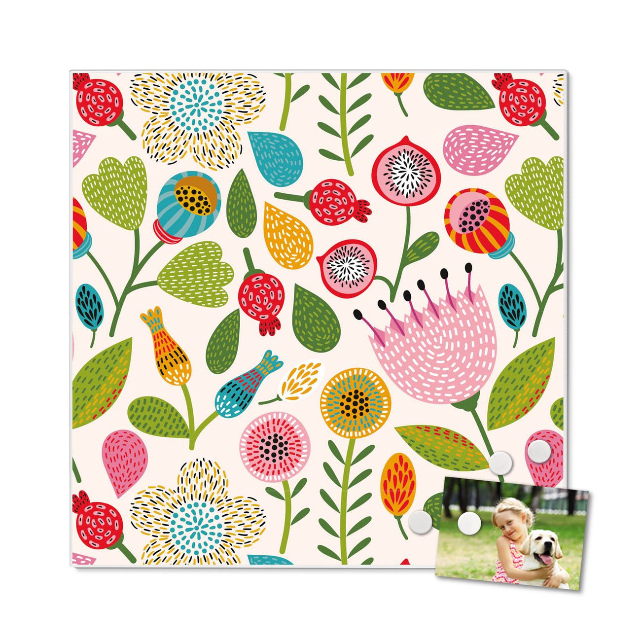 Stahl Magnettafel 50x50cm Blumen Naiv