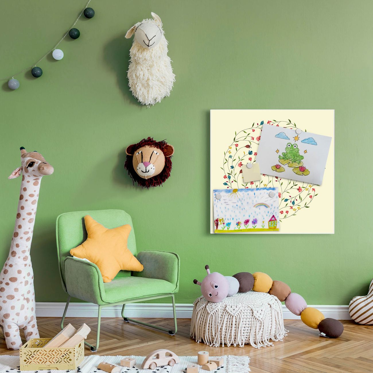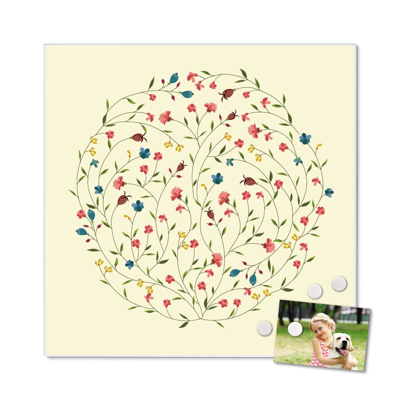 Die banjado Design Magnettafel mit Motiv Motiv Blumenreigen bringt Ordnung in Ihr Zettelchaos. Fotos, Termine, Notizen oder Rezepte lassen Sich hier stilvoll mit Magneten ordnen, Sie behalten alles im Blick. An der Pinnwand halten alle handelsüblichen Magnete. Mit dieser Pinnwand aus Metall haben Sie auch ohne Notizen und Magnete ein schönes Dekoelement. Das Quadratische Format bietet Ihnen ausreichend Platz um alle wichtigen Informationen im Blick zu behalten.