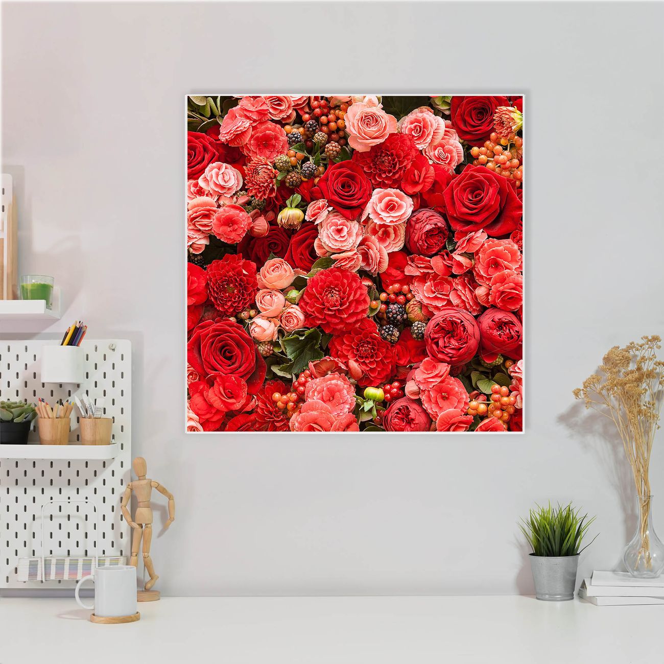 Stahl Magnettafel 50x50cm Bouquet in Rot