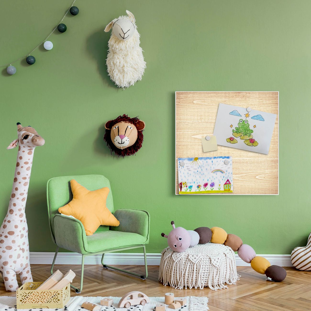 Die banjado Design Magnettafel mit Motiv Motiv Bretter bringt Ordnung in Ihr Zettelchaos. Fotos, Termine, Notizen oder Rezepte lassen Sich hier stilvoll mit Magneten ordnen, Sie behalten alles im Blick. An der Pinnwand halten alle handelsüblichen Magnete. Mit dieser Pinnwand aus Metall haben Sie auch ohne Notizen und Magnete ein schönes Dekoelement. Das Quadratische Format bietet Ihnen ausreichend Platz um alle wichtigen Informationen im Blick zu behalten.