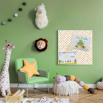 Die banjado Design Magnettafel mit Motiv Motiv Bunte Punkte bringt Ordnung in Ihr Zettelchaos. Fotos, Termine, Notizen oder Rezepte lassen Sich hier stilvoll mit Magneten ordnen, Sie behalten alles im Blick. An der Pinnwand halten alle handelsüblichen Magnete. Mit dieser Pinnwand aus Metall haben Sie auch ohne Notizen und Magnete ein schönes Dekoelement. Das Quadratische Format bietet Ihnen ausreichend Platz um alle wichtigen Informationen im Blick zu behalten.