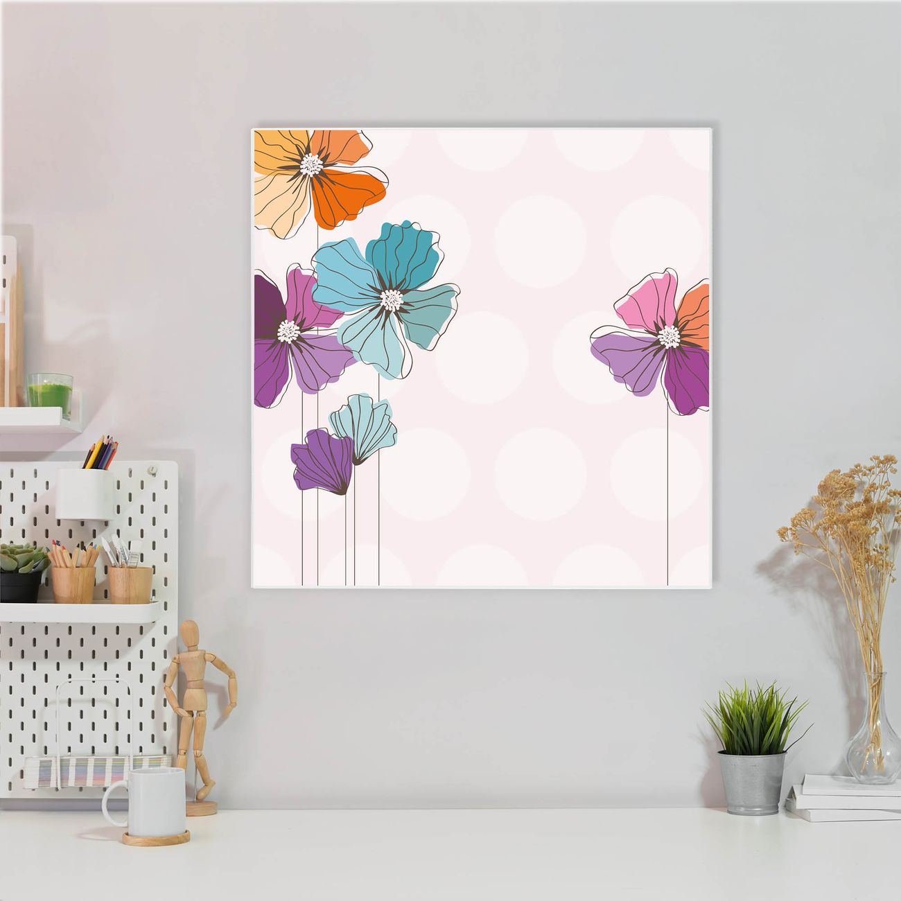 Stahl Magnettafel 50x50cm Bunter Mohn