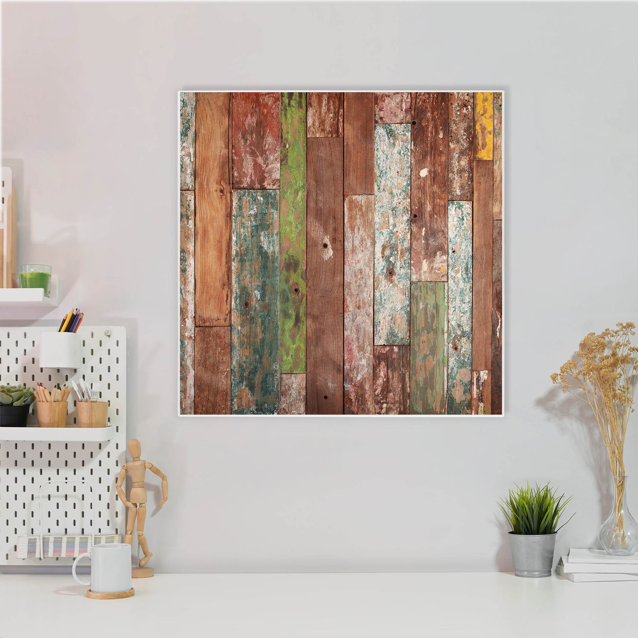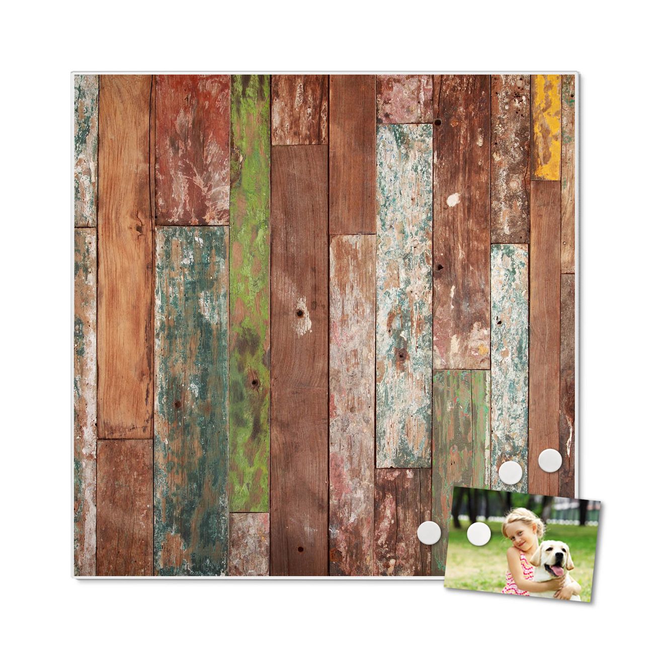 Stahl Magnettafel 50x50cm Buntes Holz
