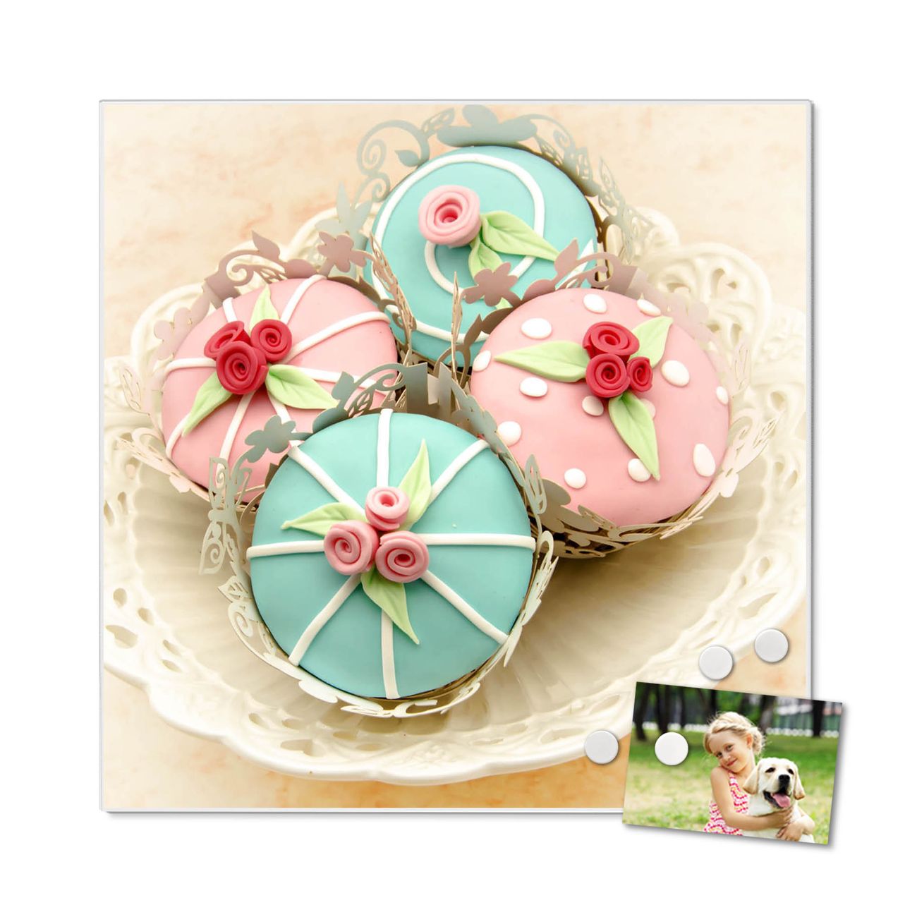 Stahl Magnettafel 50x50cm Cupcakes